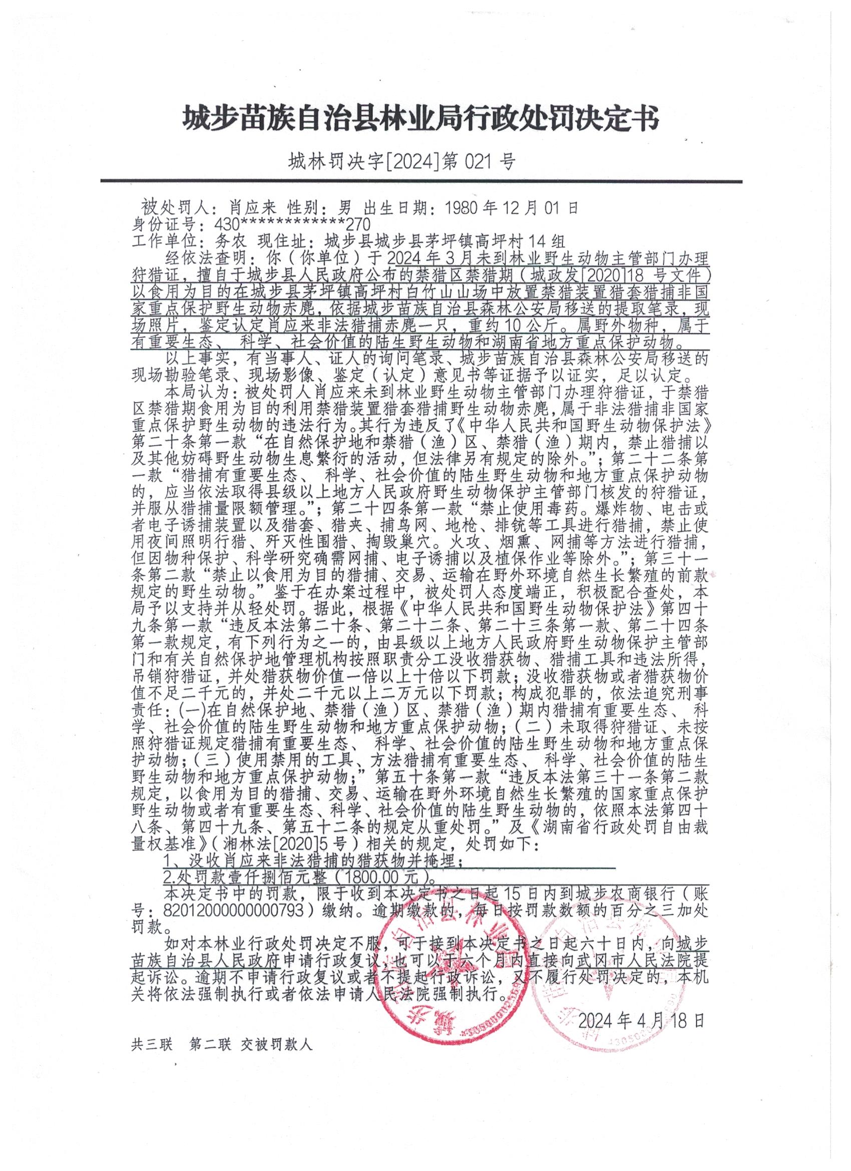城林罚决字﹝2024﹞第021号