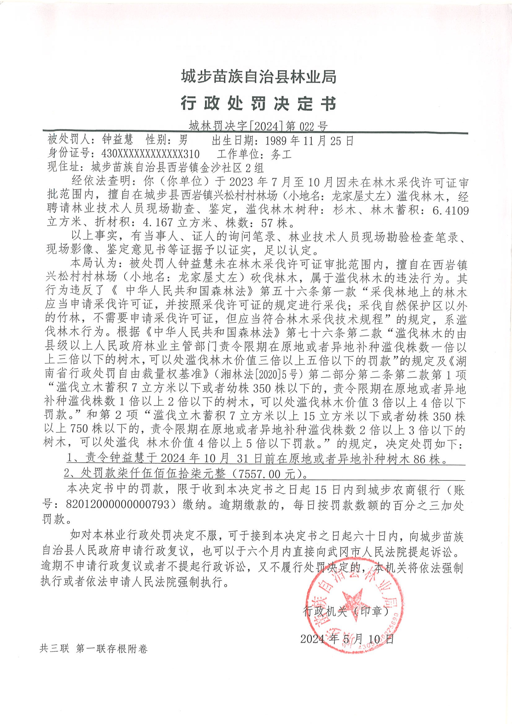 城林罚决字﹝2024﹞第022号