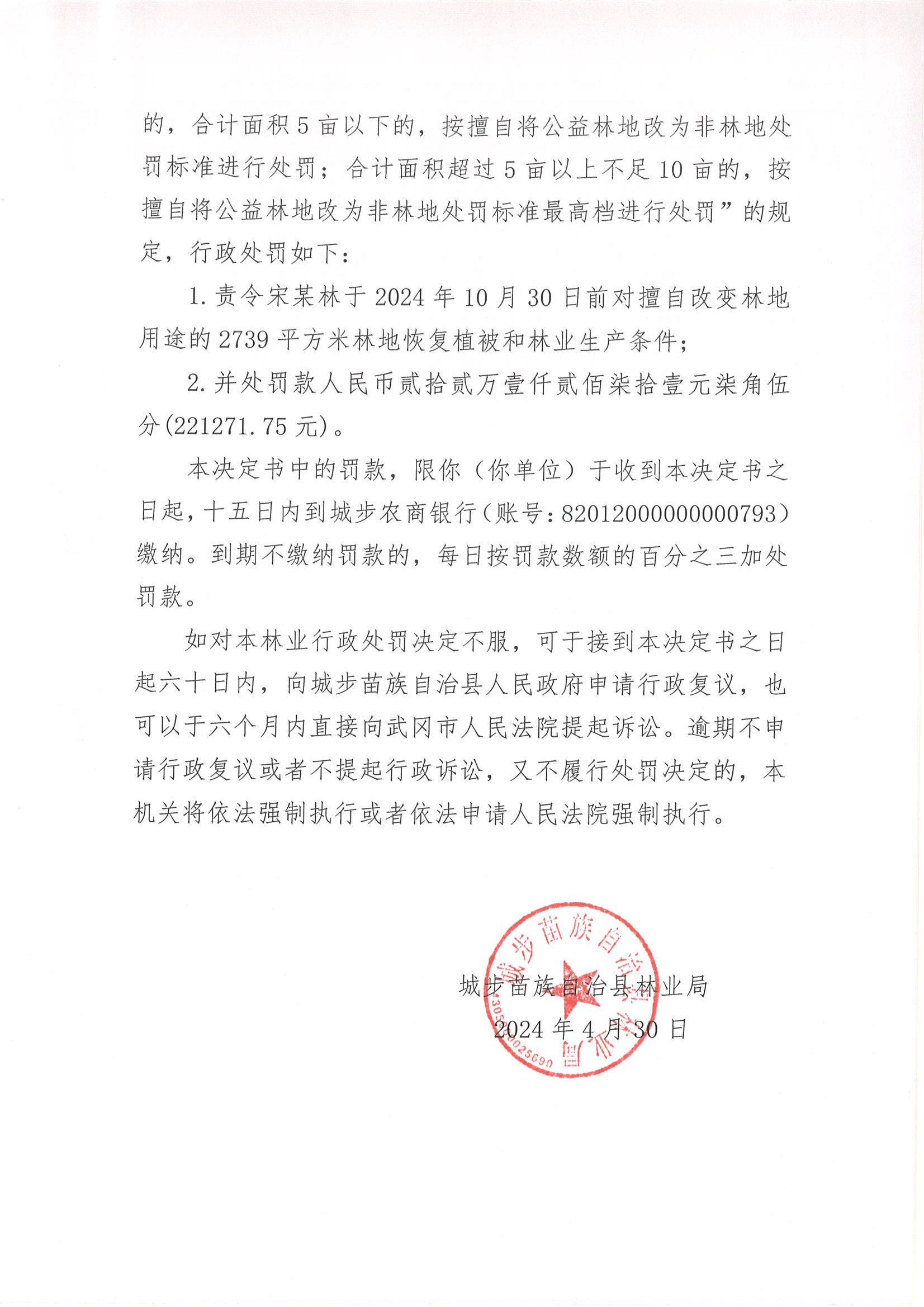 城林罚决字﹝2024﹞第014号
