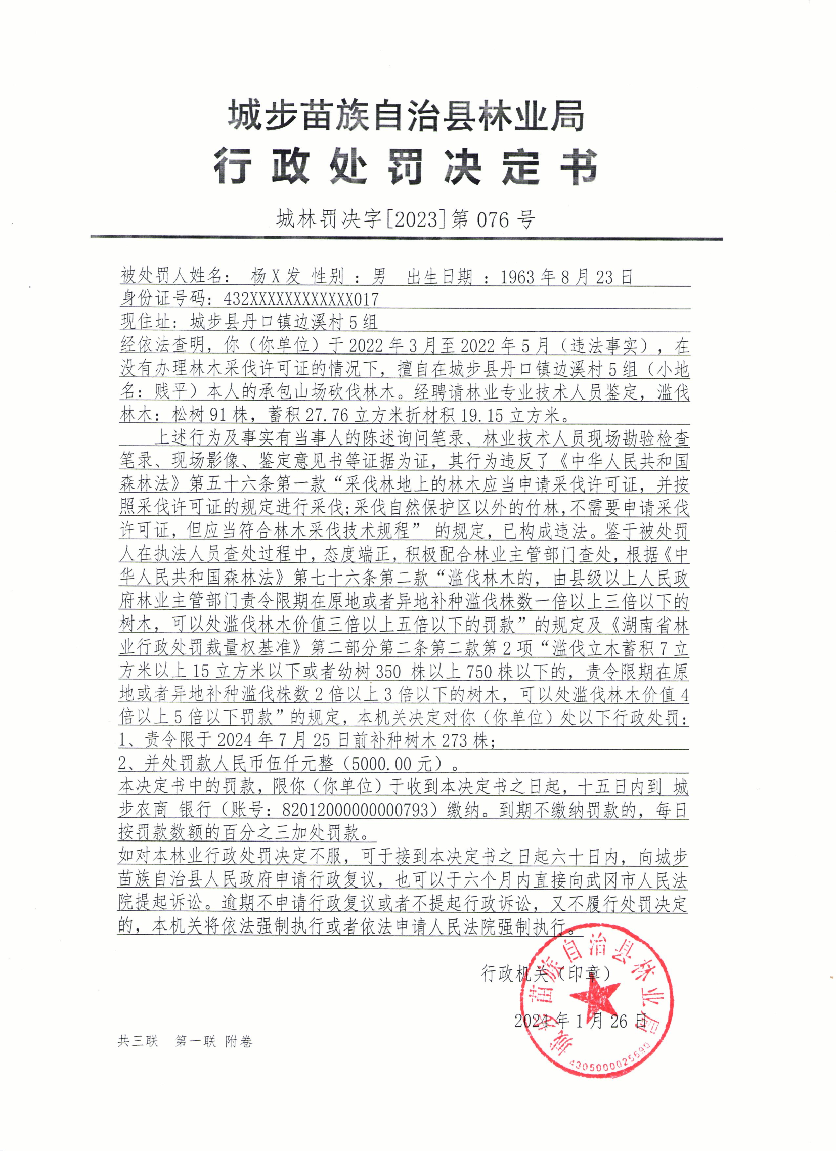 城林罚决字〔2023〕第076号