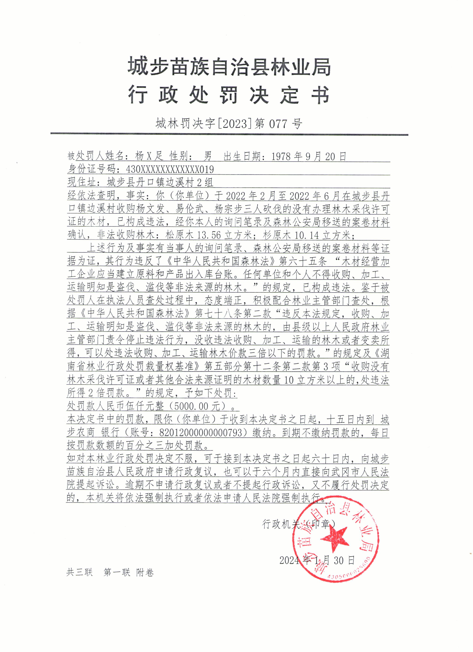 城林罚决字〔2023〕第077号