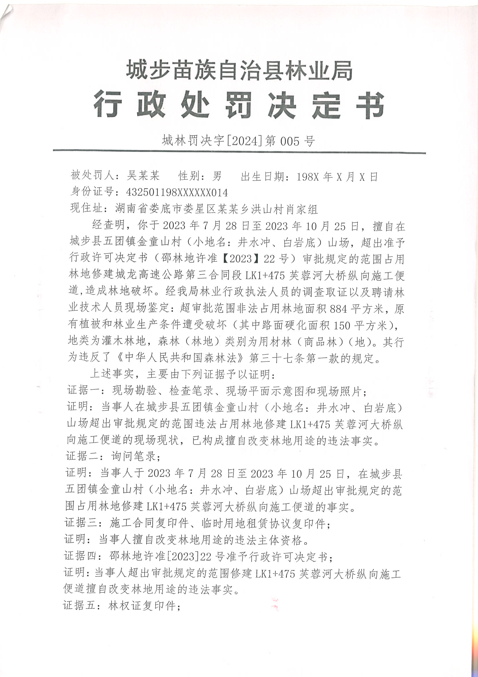 城林罚决字〔2024〕005号