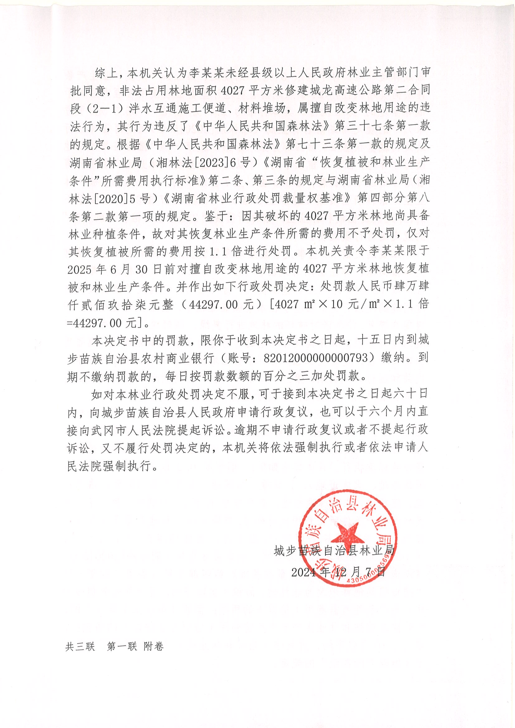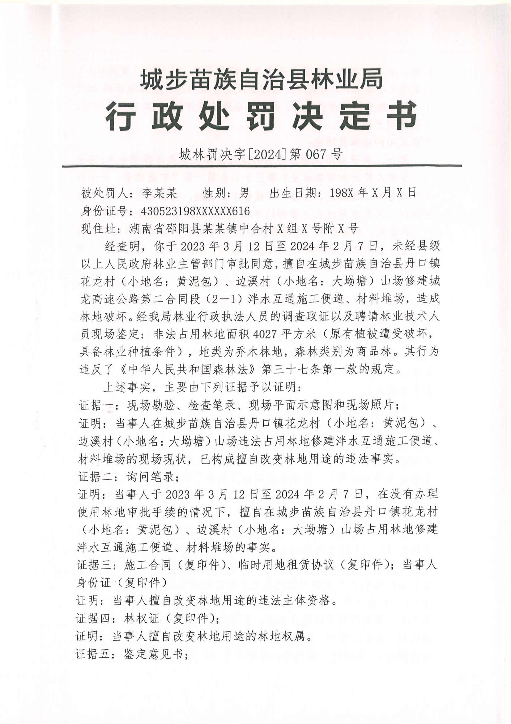 城林罚决字﹝2024﹞第067号