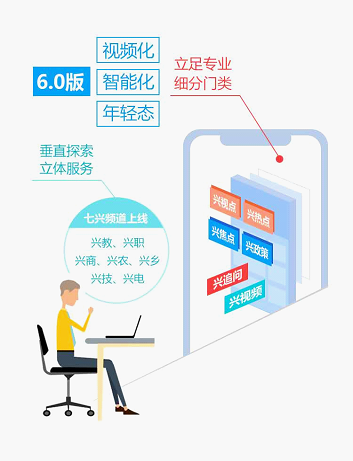 这次,我们以崭新的姿态与您重逢,体验更轻一点、界面更靓一点、新闻更多一点,用可视化新闻追求浏览阅读的快感,用垂直化频道深耕民生沃土。兴视点、兴视频、兴热点、兴焦点、兴政策、兴追问等兴系列专区,立足专业、细分门类,新上线“七兴”频道——兴教、兴职、兴商、兴农、兴乡、兴技、兴电,与行业携手共建,权威发声,一键直达。