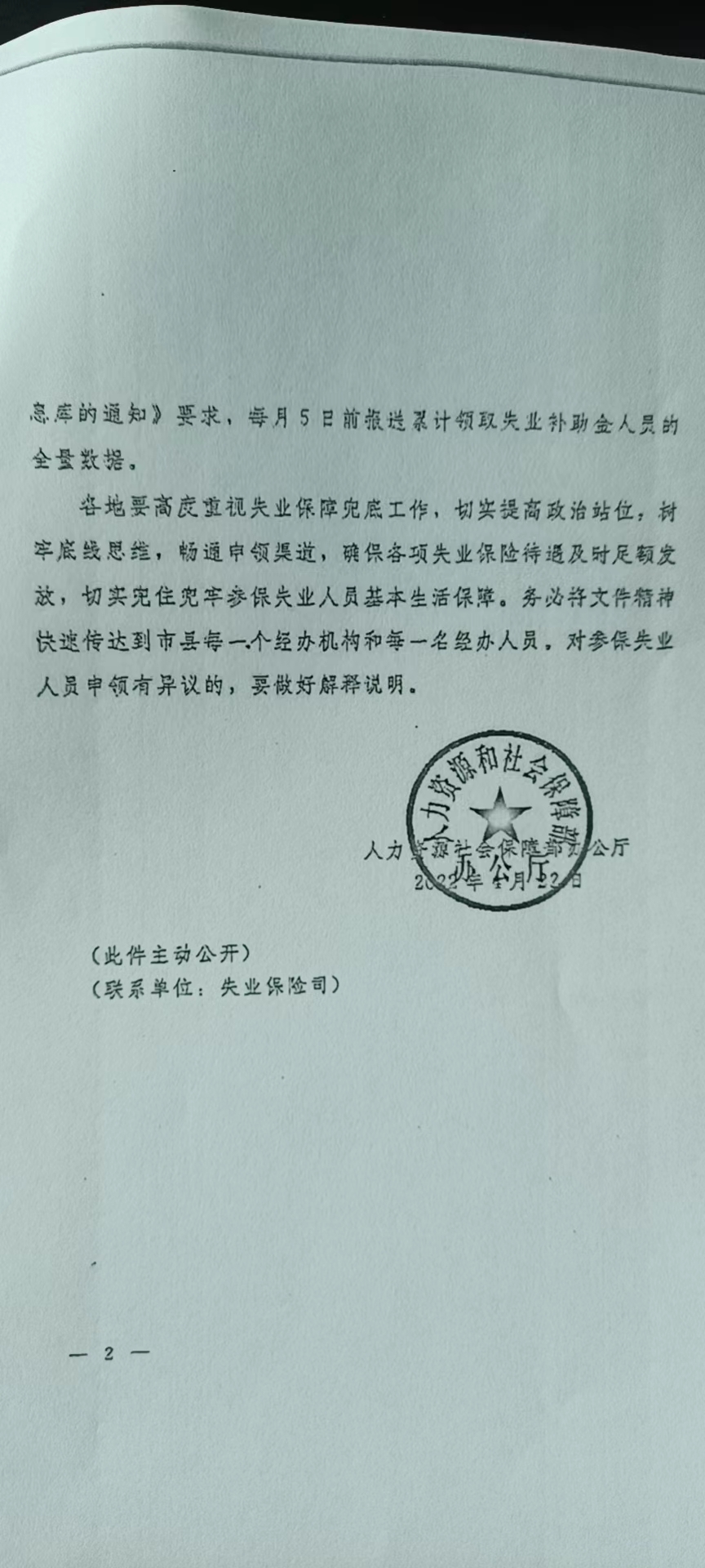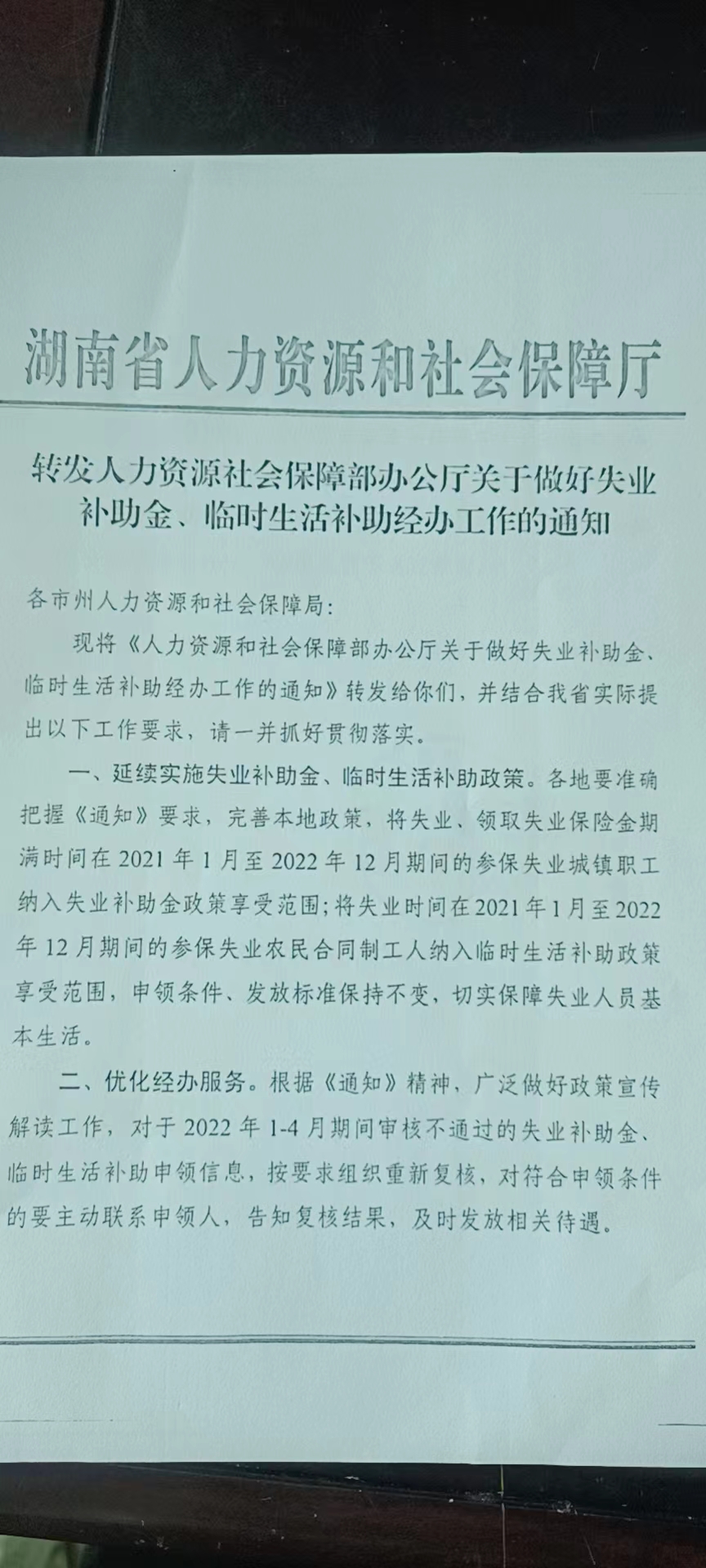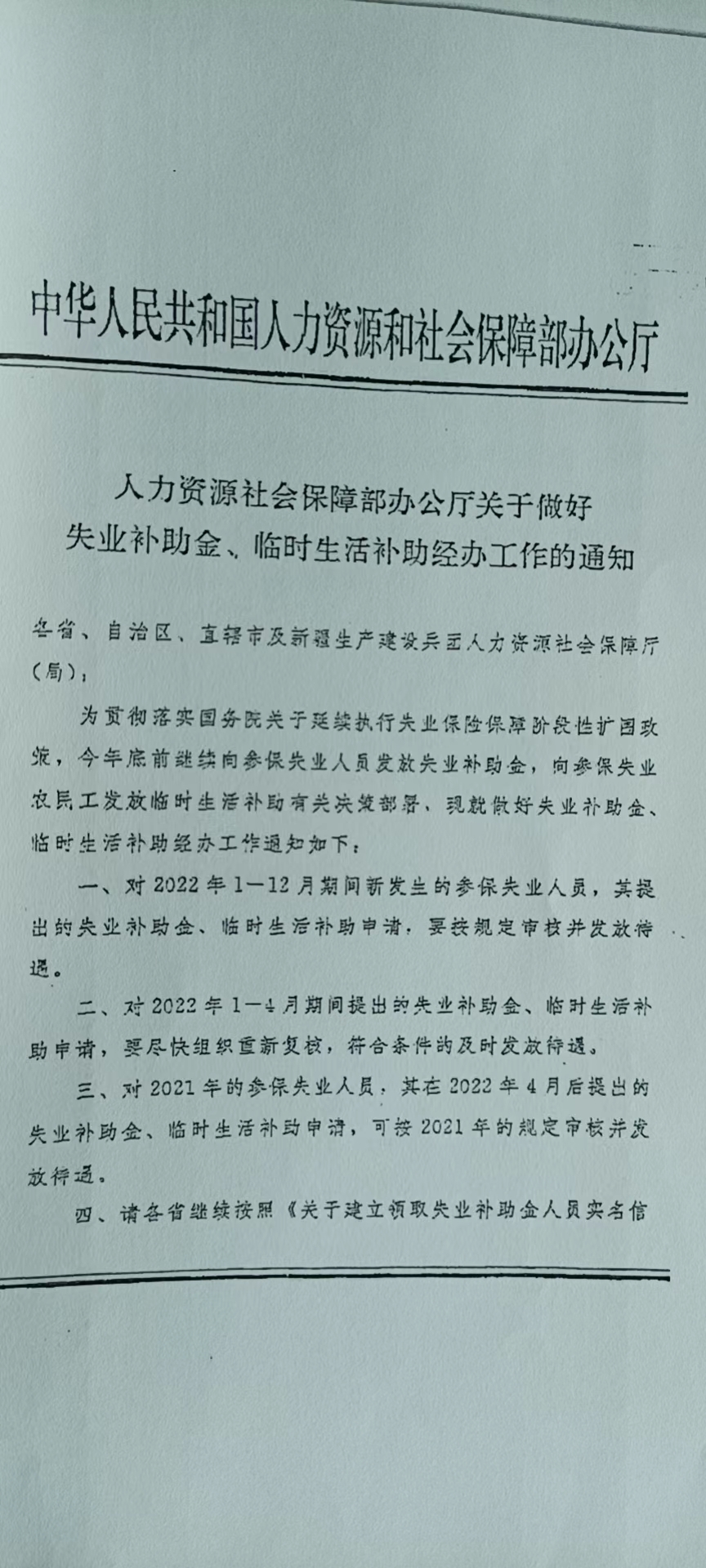 转发人力资源社会保障部办公厅关于做好失业补助金、临时生活补助经办工作的通知