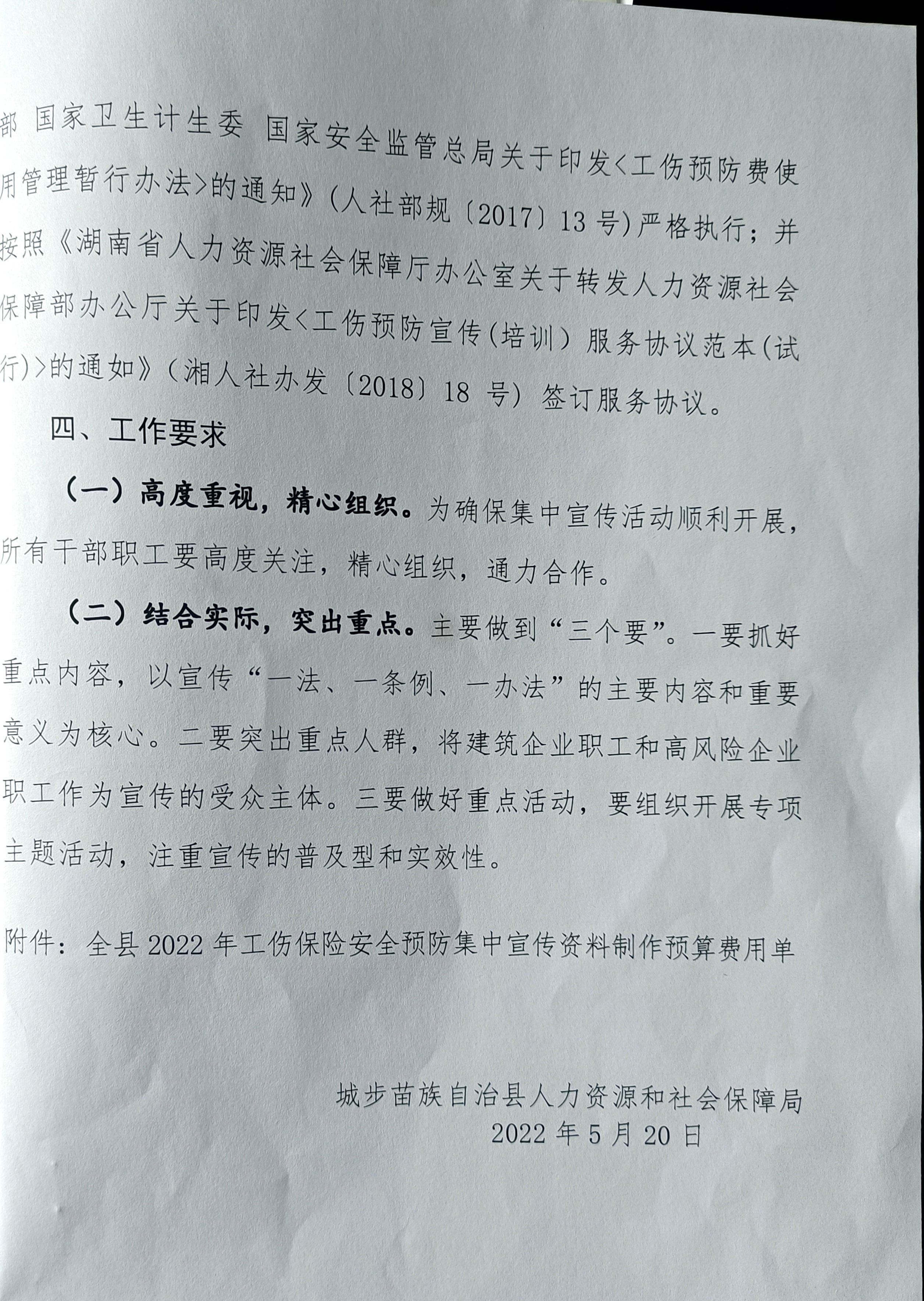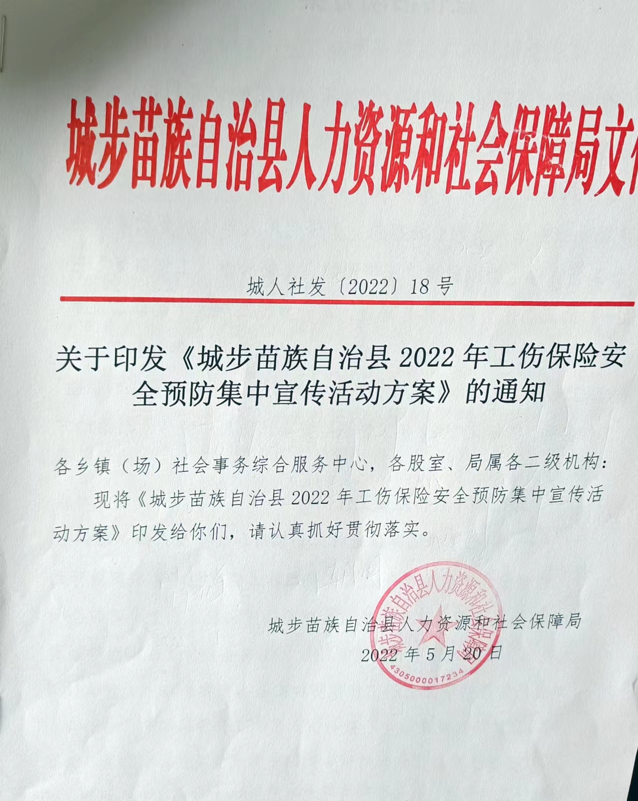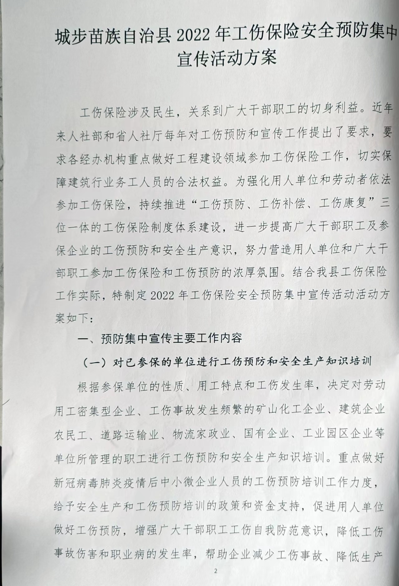关于印发《城步苗族自治县2022年工伤保险安全预防集中宣传活动方案》的通知