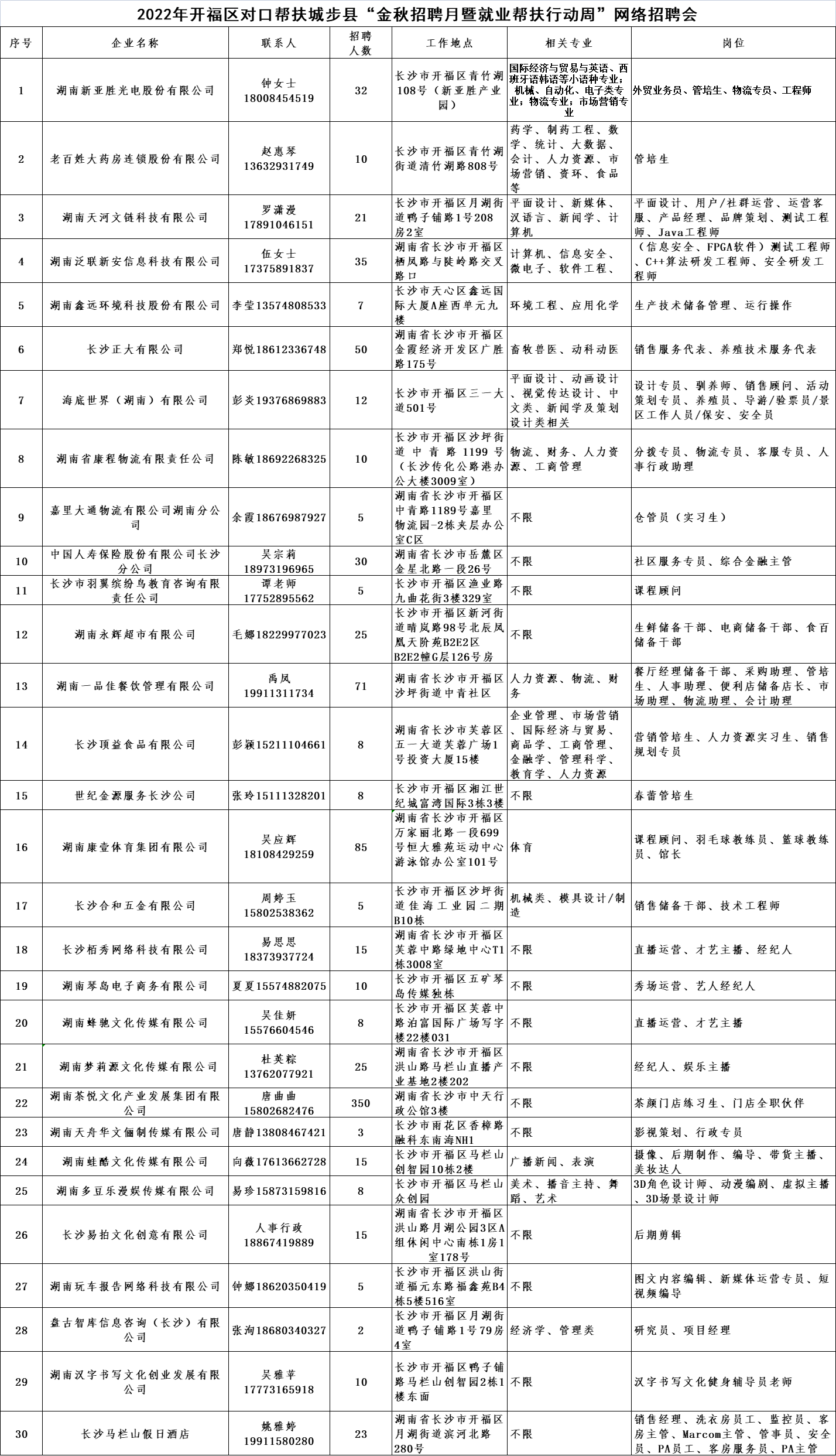 2022年开福区对口帮扶城步县“金秋招聘月暨就业帮扶行动周”网络招聘会