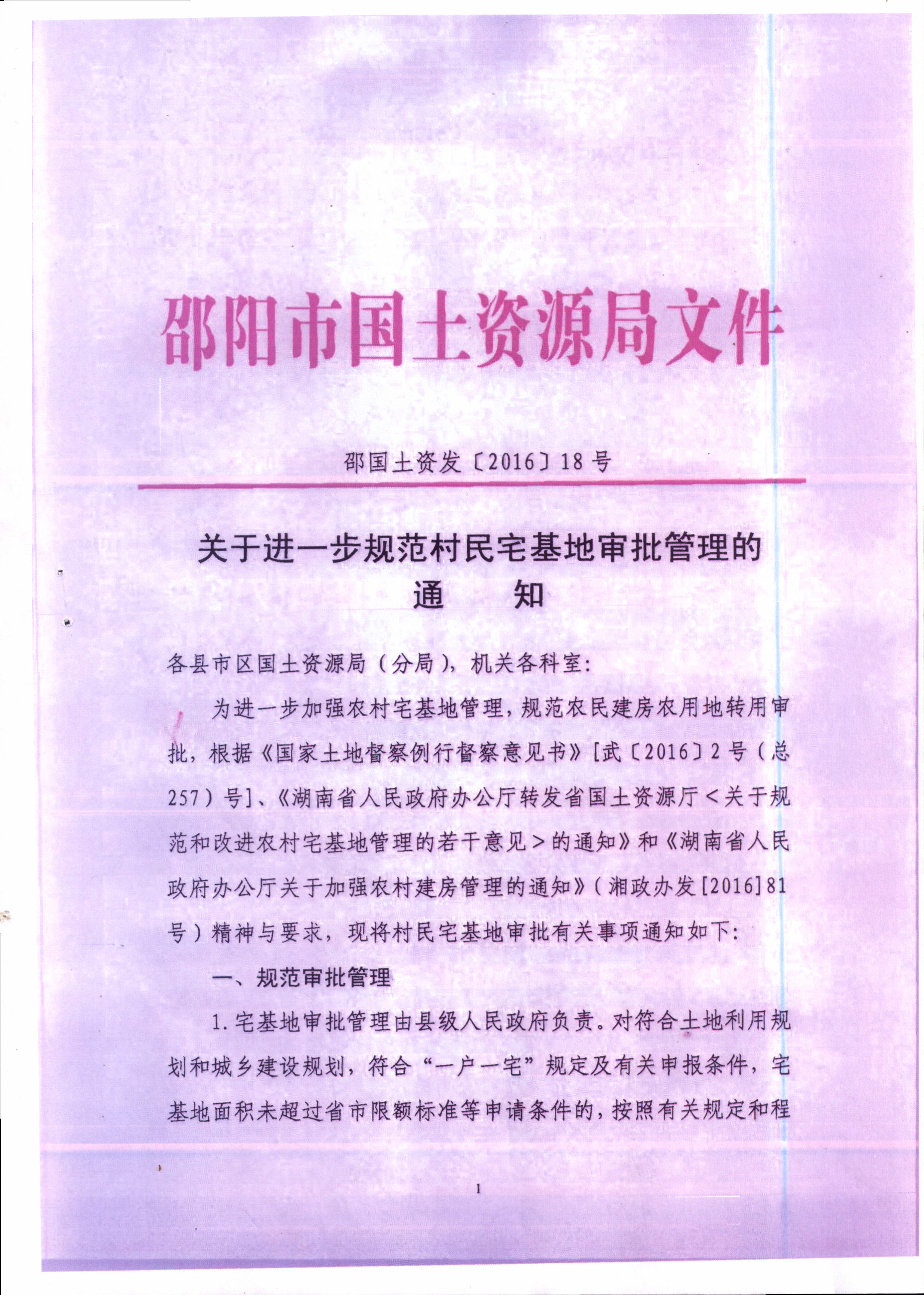 关于进一步规范村民宅基地审批管理的通知
