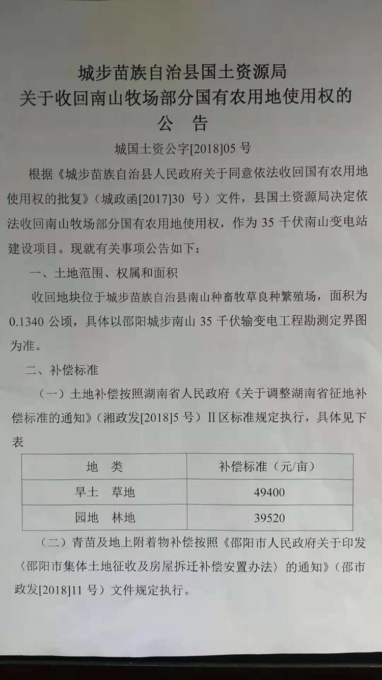 关于收回南山牧场部分国有农用地使用权的公告及南山种畜牧草良种繁殖场拟征地告知书