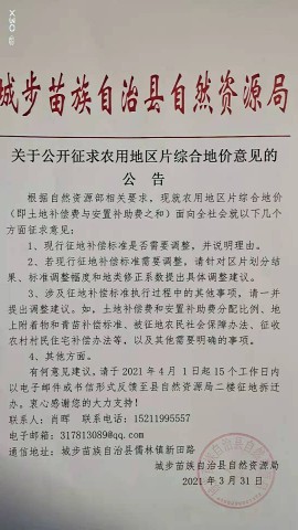 城步苗族自治县自然资源局关于公开征求农用地区片综合地价意见的公告