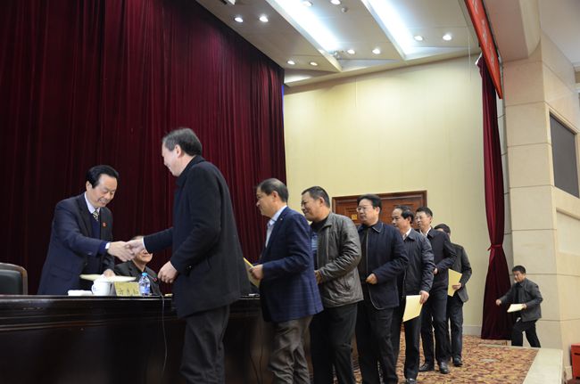 省国土资源厅党组副书记、副厅长颜学毛通报表彰了2016年度市州国土资源局绩效考核先进单位和先进个人、2014—2016年全省国土资源系统信访工作先进集体和先进个人,全省14个市州国土资源局局长递交了国土资源工作目标管理责任书。