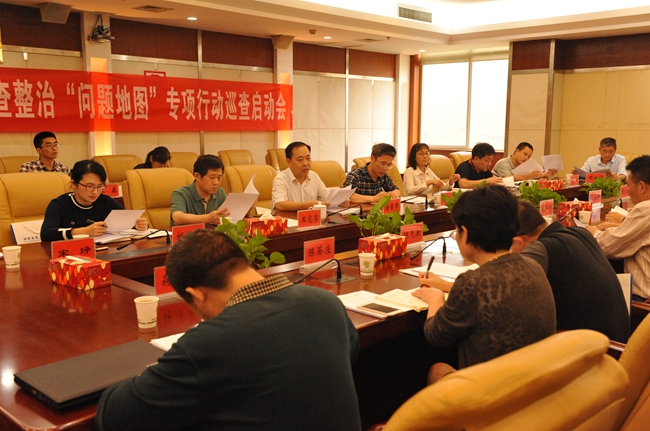 会议明确,省级联席会议办公室对市州全覆盖排查整治“问题地图”专项行动工作进行巡查,成立巡查组,由省厅和省新闻出版广电局等单位相关负责人带队,从相关单位抽调人员,分7个巡查组于10月11日起分赴14个市州。每个市州巡查市州本级和1-2个县(市),巡查各市州学习贯彻中央领导重要指示精神情况;专项行动工作方案制定部署,组织机构建立和宣传发动工作开展情况;组织涉及地图的相关单位自查整改,对有关地图产品重点抽查情况;对“问题地图”违法违规行为依法查处;宣传教育和有关违法违规行为曝光警示情况等。