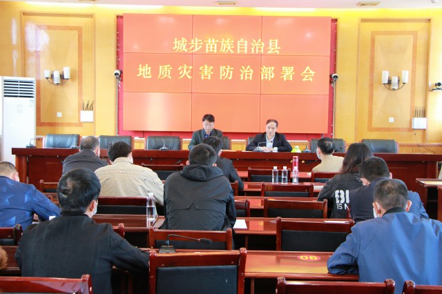 3.18日城步苗族自治县召开地质灾害防治部署暨业务知识培训大会,全县13个乡镇场地质灾害防治工作的相关负责人参加会议。