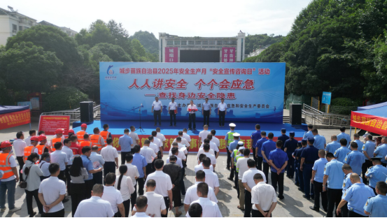 城步新闻网6月17日讯(记者 毛学军 阳远志 通讯员 杨曦)6月16日,城步在儒林广场开展以“人人讲安全、个个会应急——查找身边安全隐患”为主题的第24个全国“安全生产月”安全宣传咨询日活动,旨在强化全民安全意识,压实企业主体责任,共同推动全民应急能力提升。县委常委、常务副县长马忠华出席并讲话,县委常委、副县长李爱民宣读了《安全生产倡议书》,副县长周祖德、银何、彭澹以及县政府办、县应安委会成员单位、各乡镇(场)主要负责人、企业员工代表等参加。