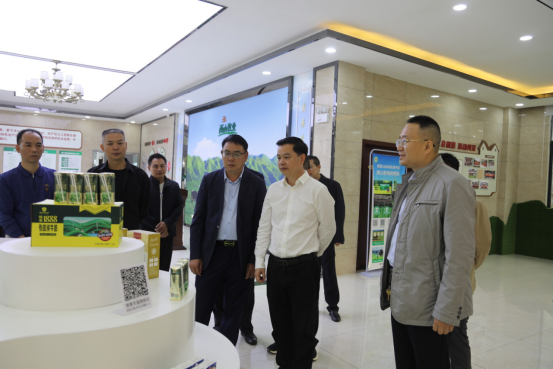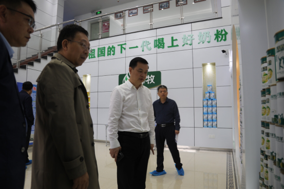 图为县委书记何德波一行在湖南羴牧营养品科技有限公司调研