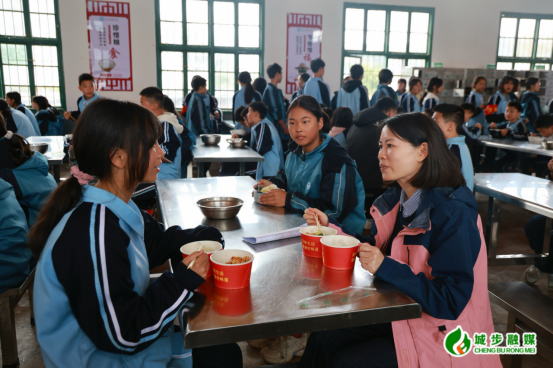 图为县委副书记、县长王慧敏在汀坪中学与学生一同用餐