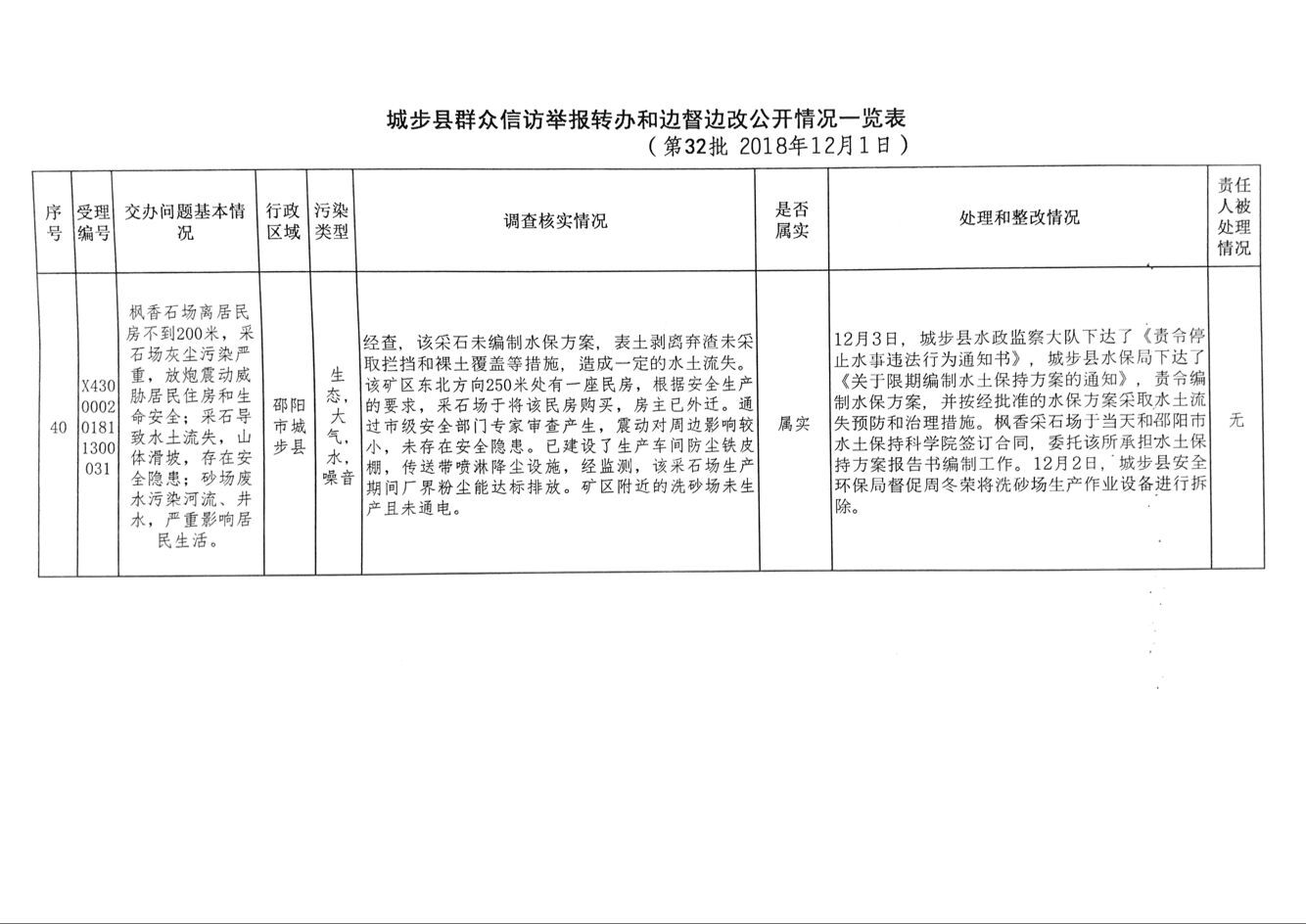 中央环保督察回头看信访交办件第32批城步县边督边改公开情况表