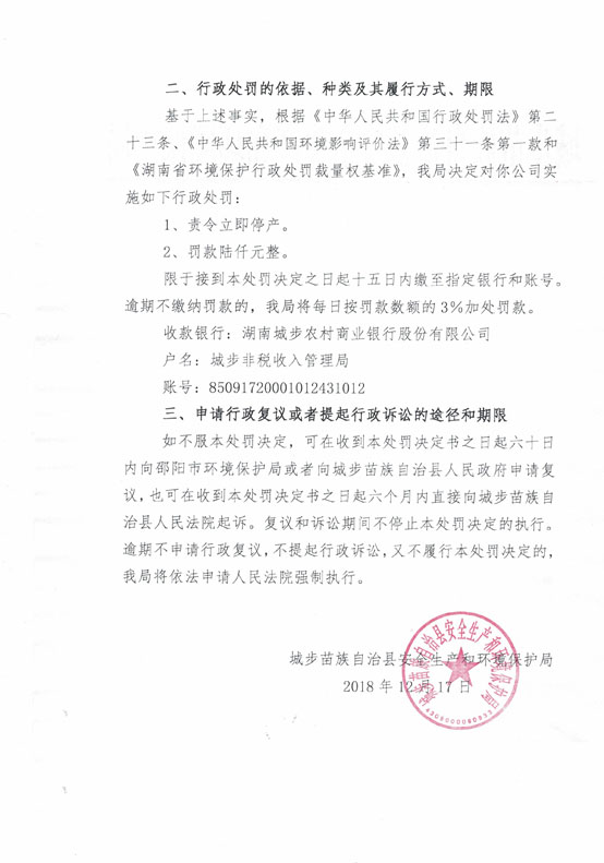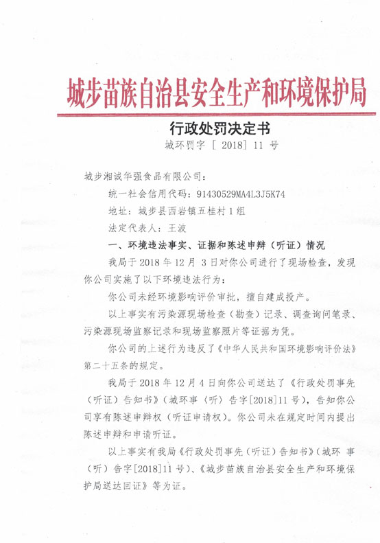 城步县安全环保局行政处罚决定书(城环罚[2018]11号)