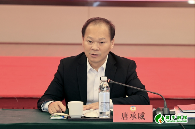 图为县政协党组书记、主席唐承威主持会议
