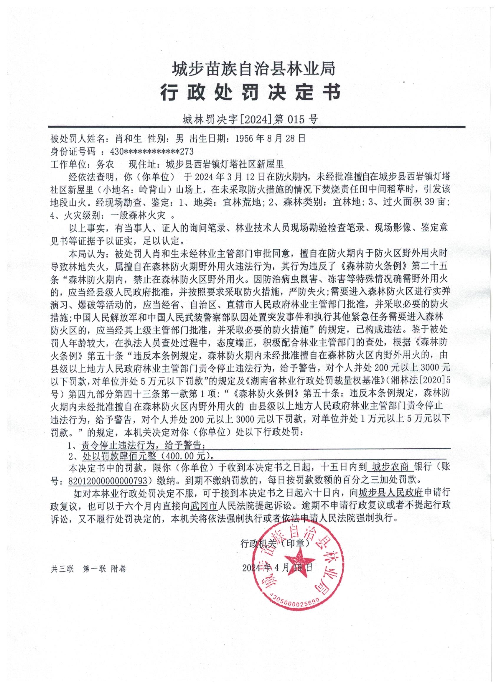 城林罚决字﹝2024﹞第015号