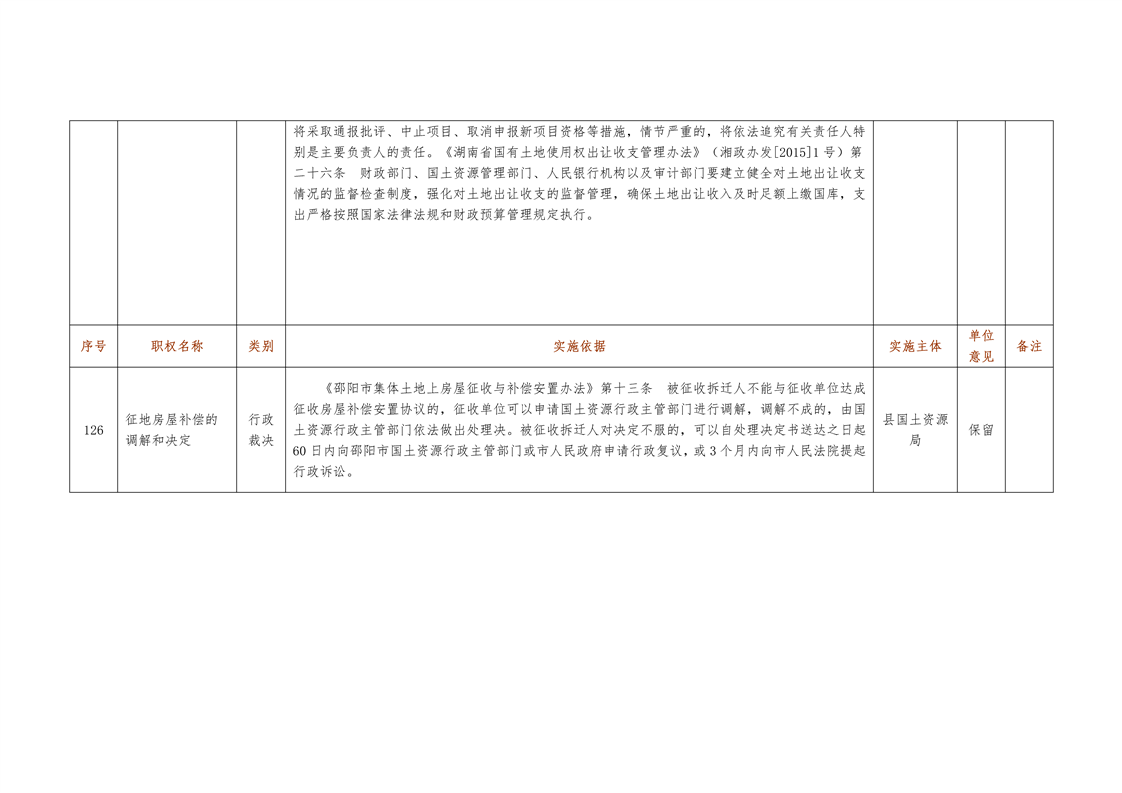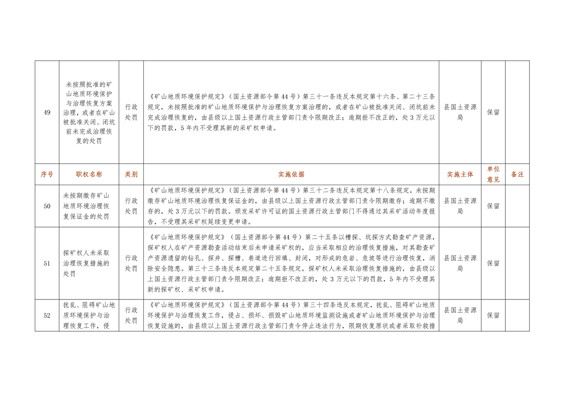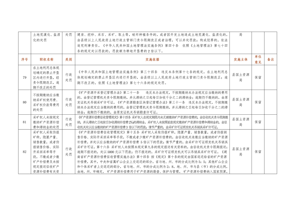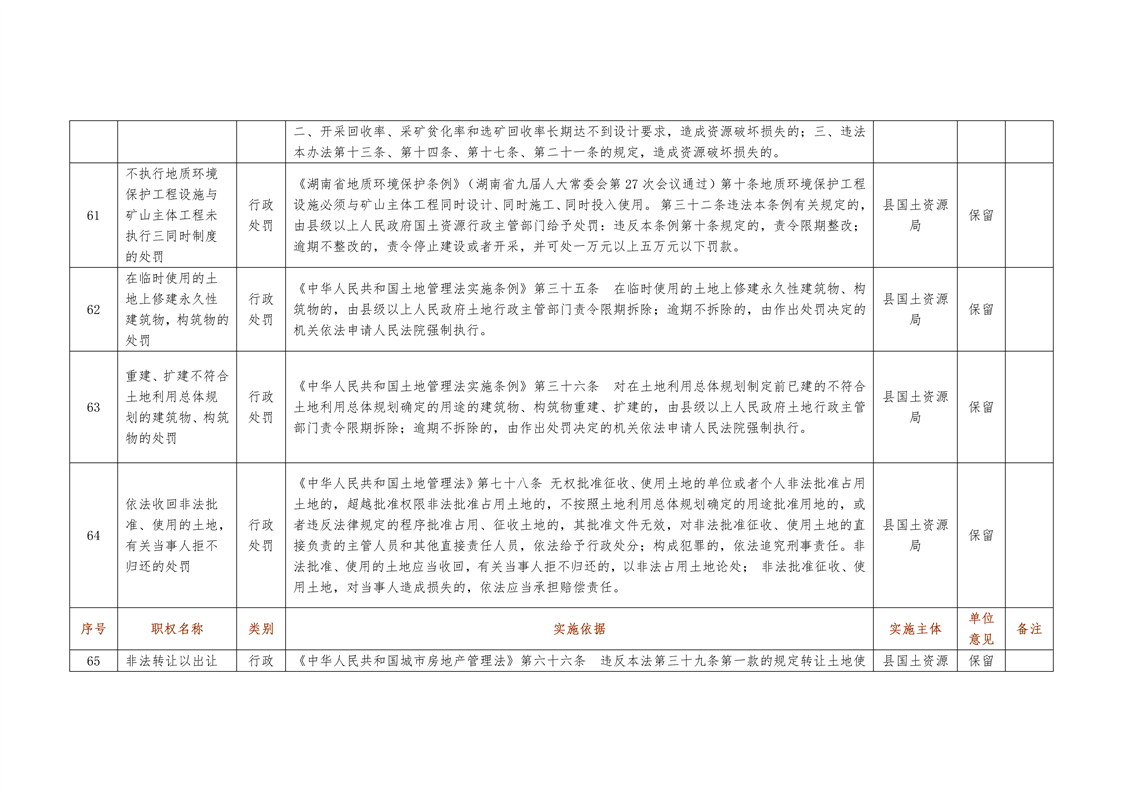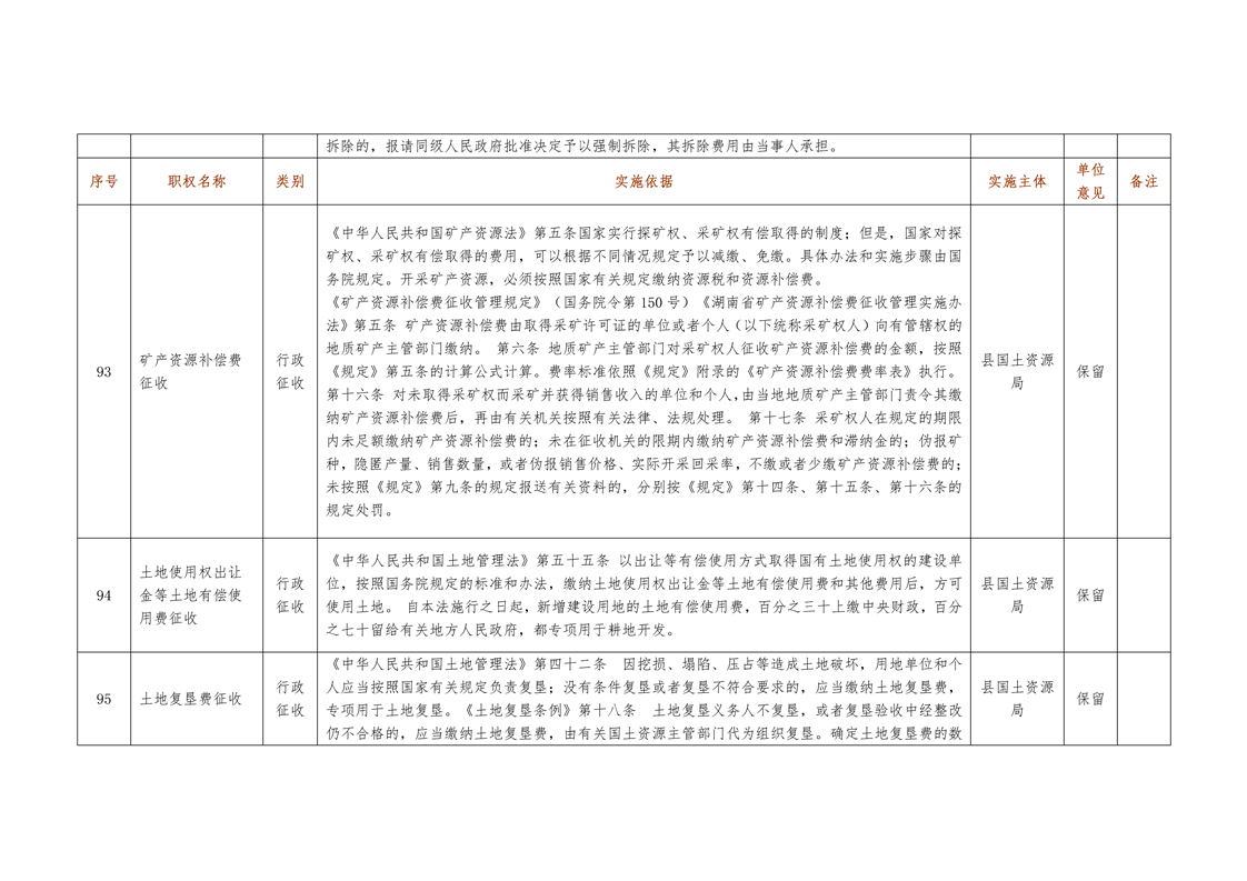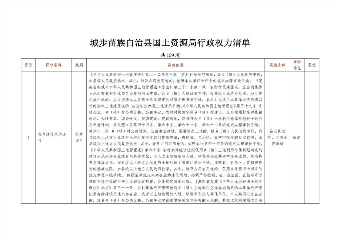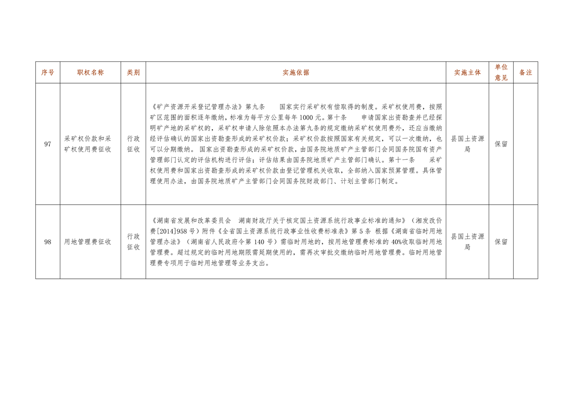 城步苗族自治县国土资源局行政权力清单