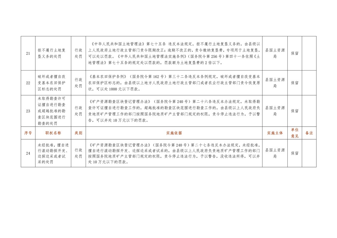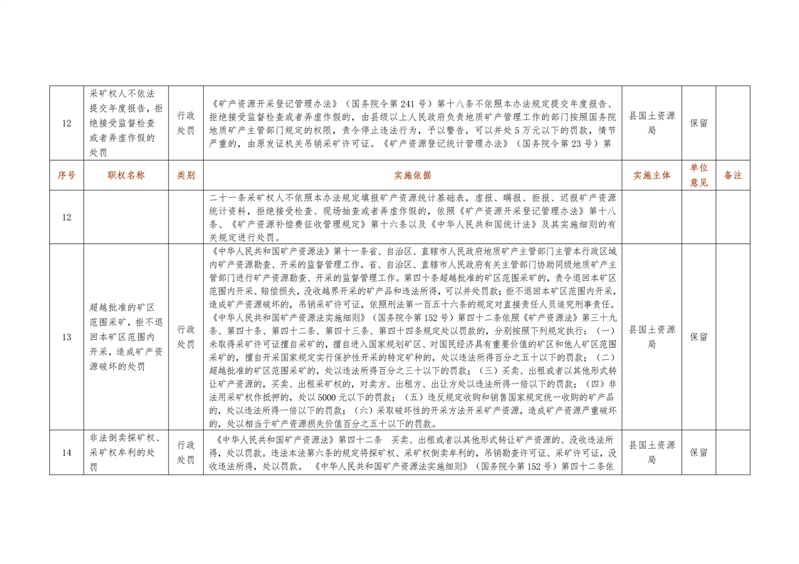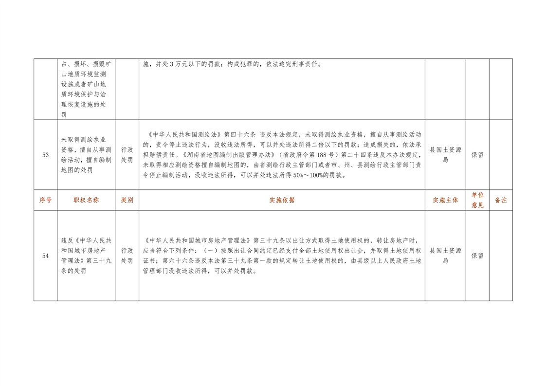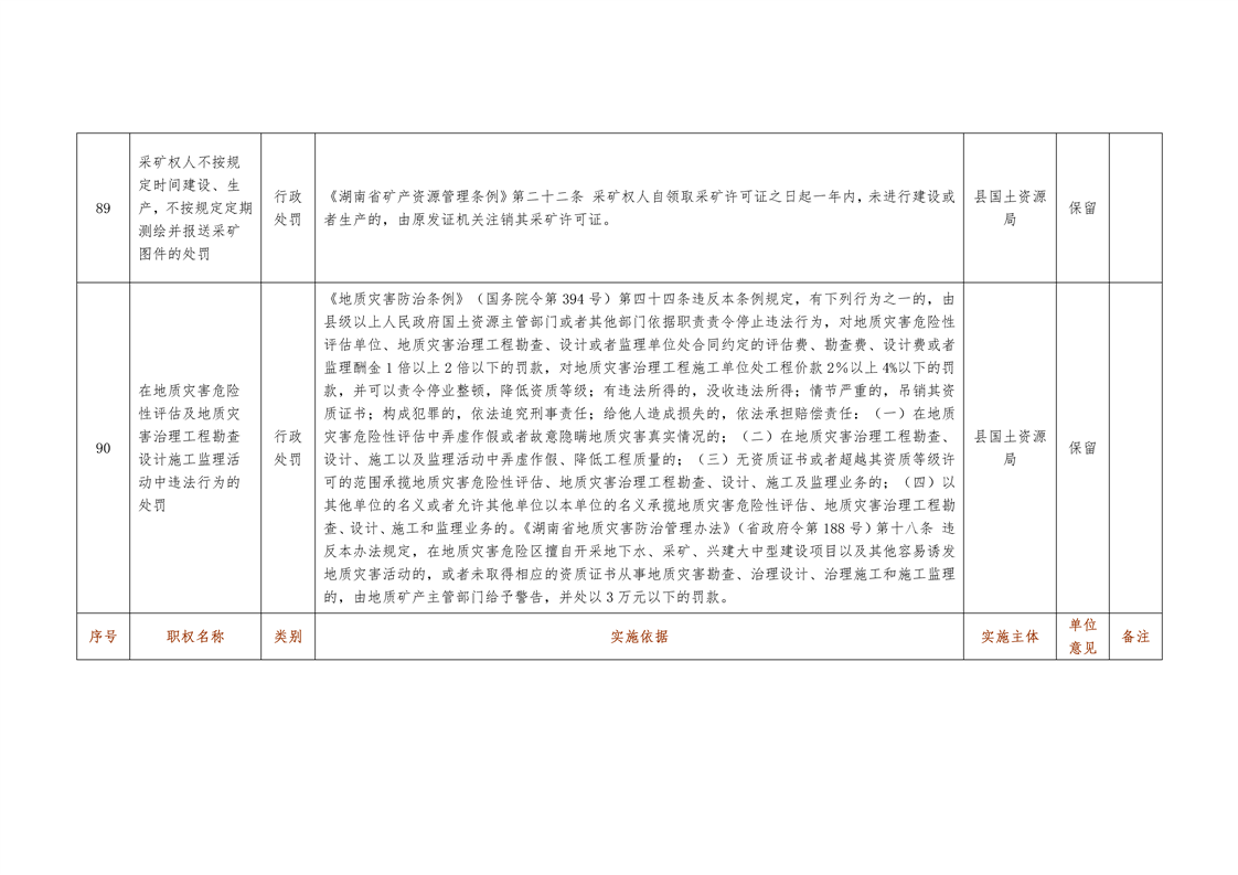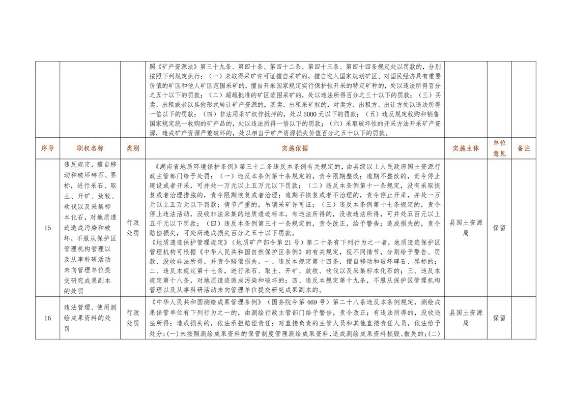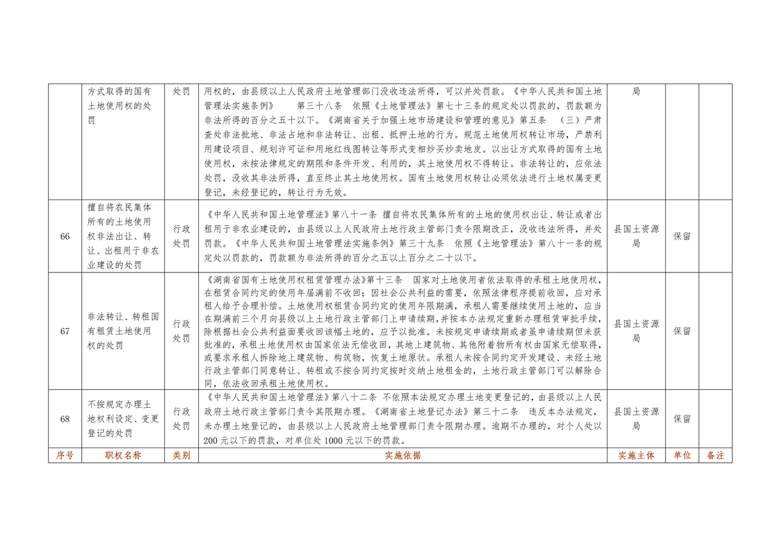 城步苗族自治县国土资源局行政权力清单