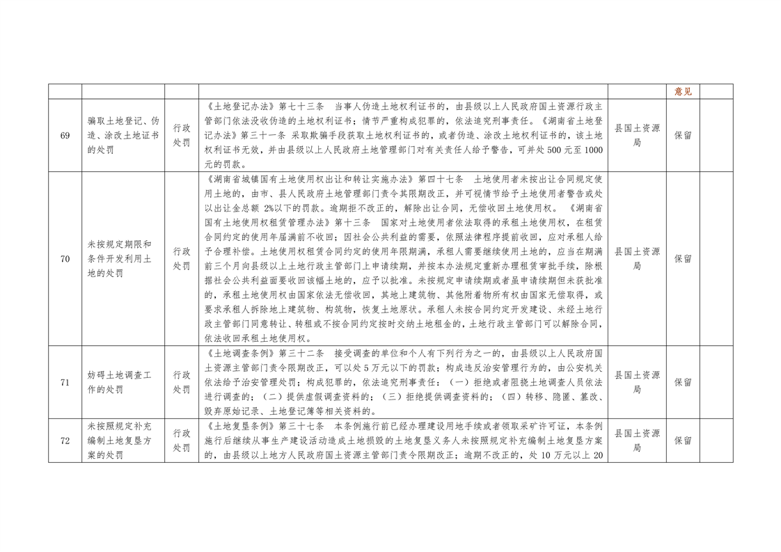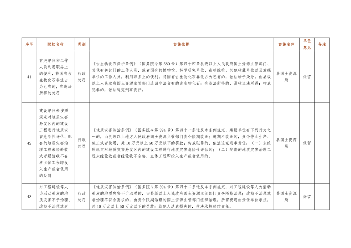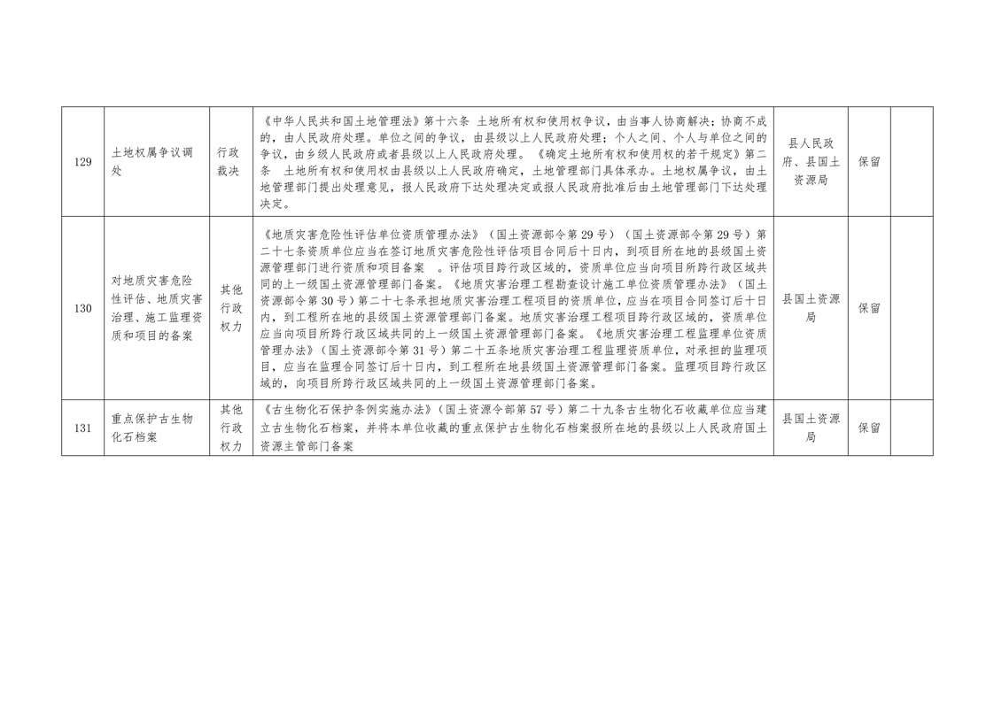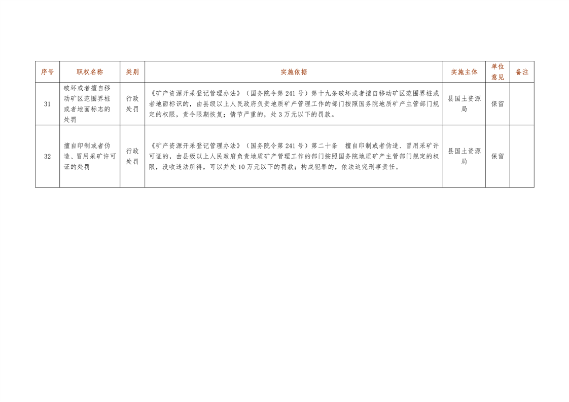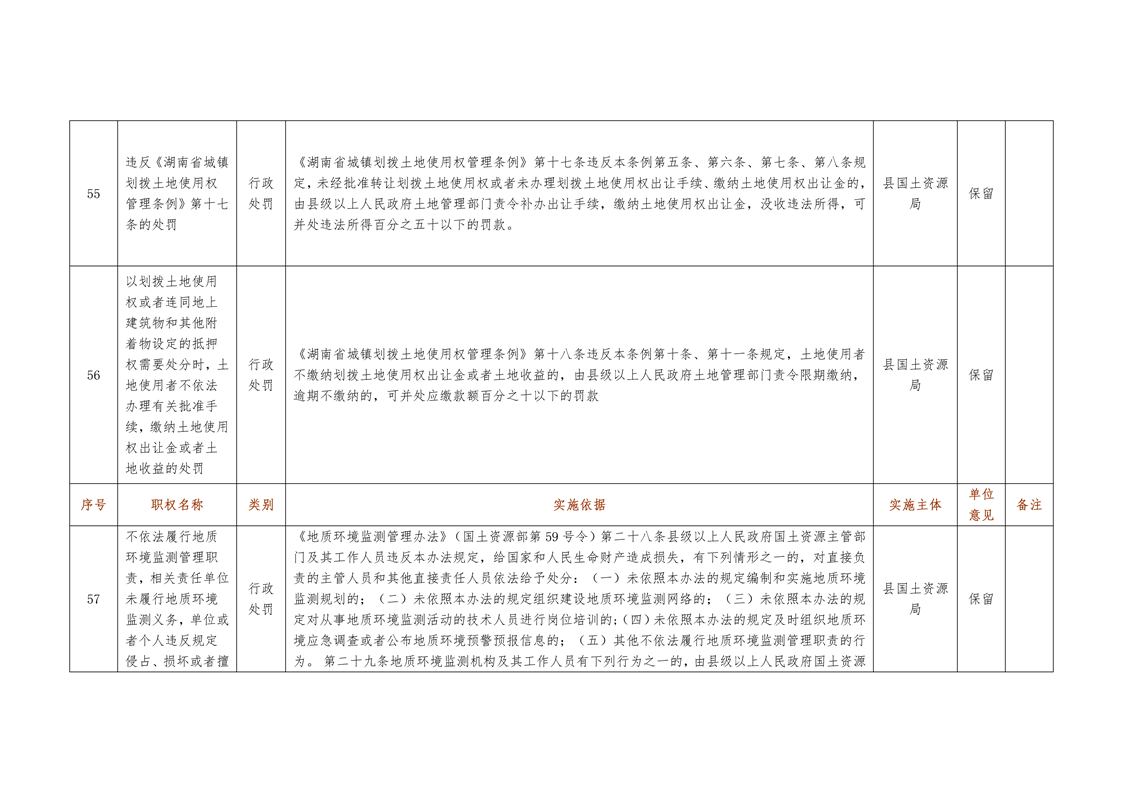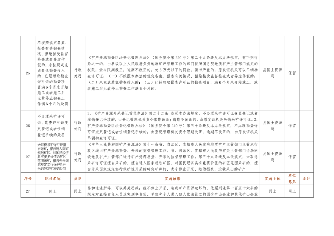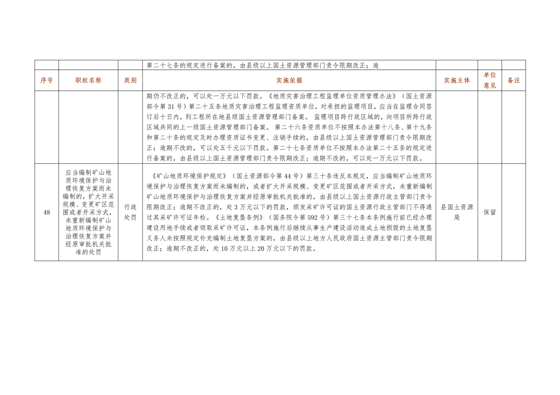 城步苗族自治县国土资源局行政权力清单