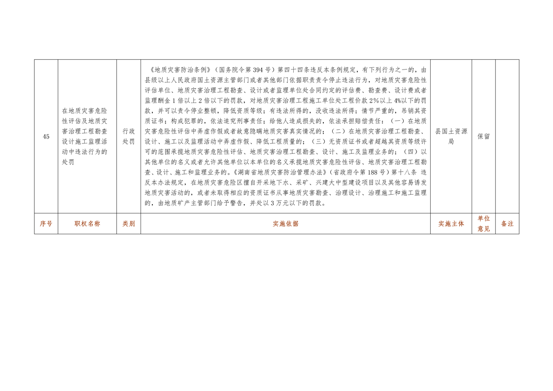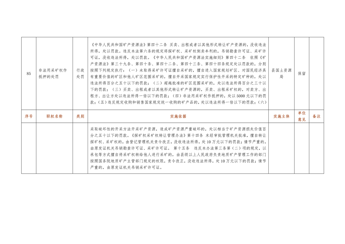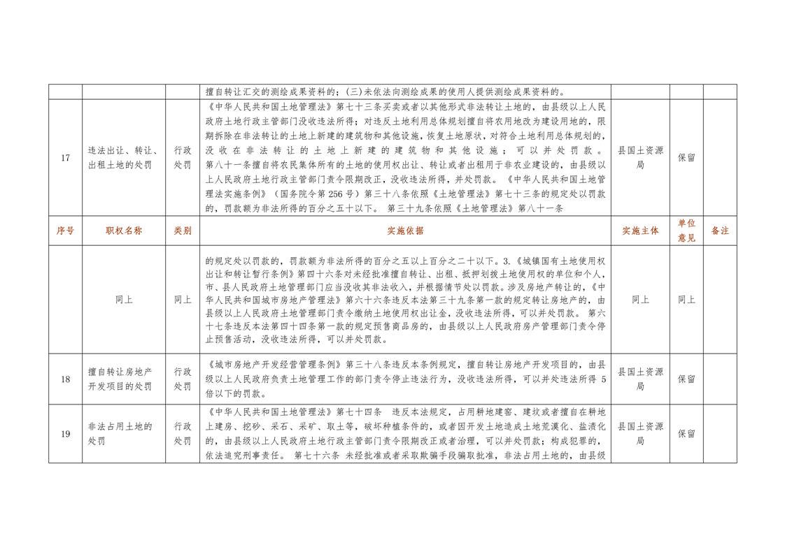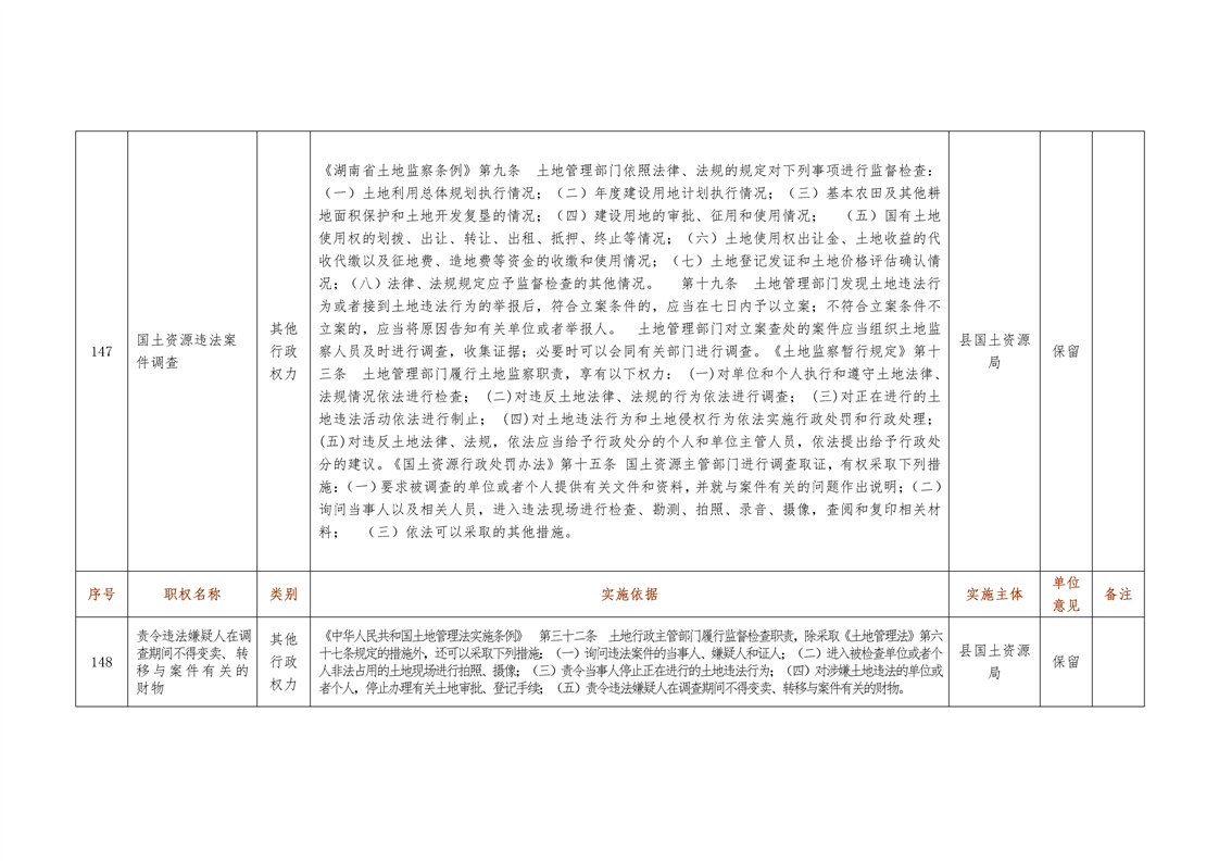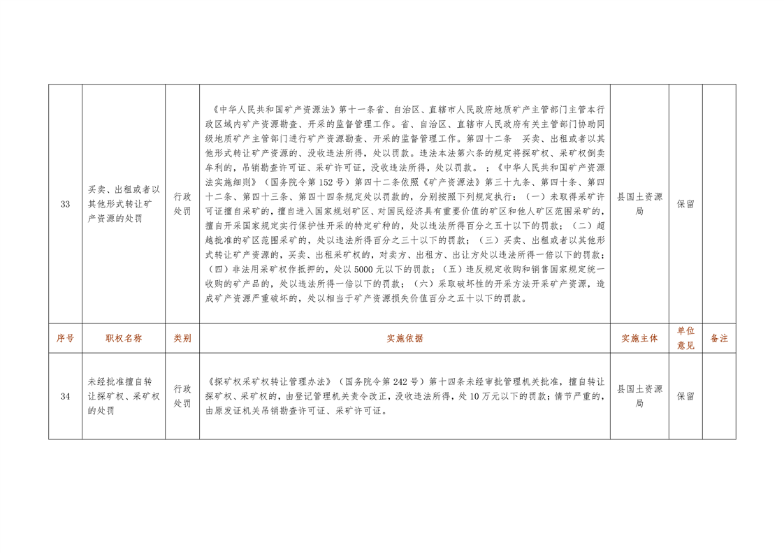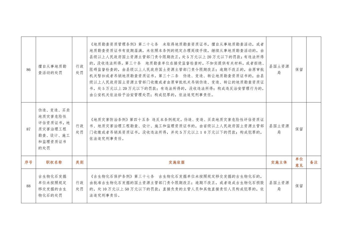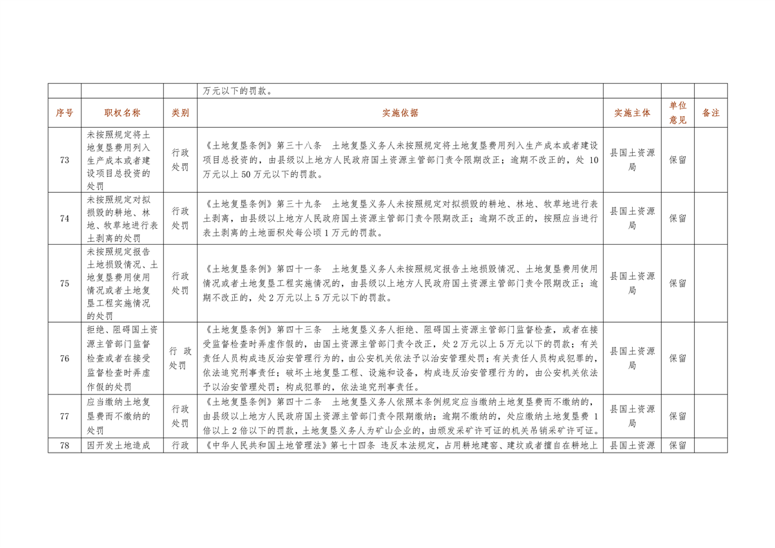 城步苗族自治县国土资源局行政权力清单