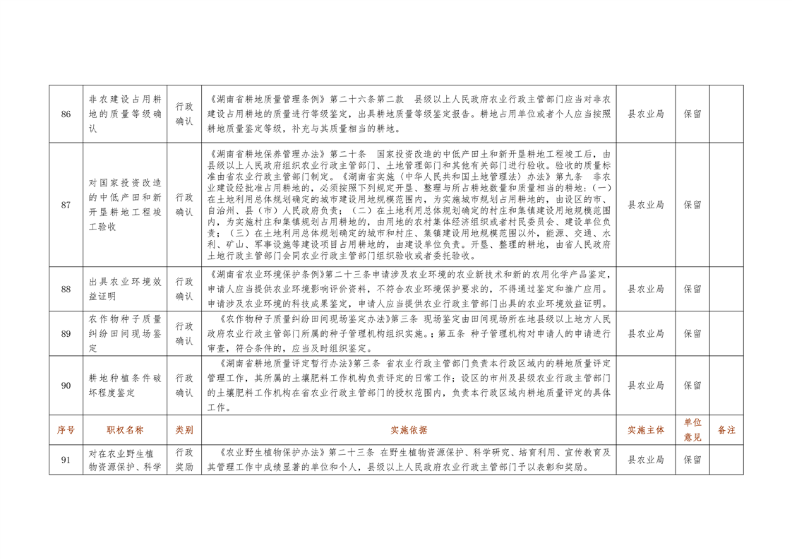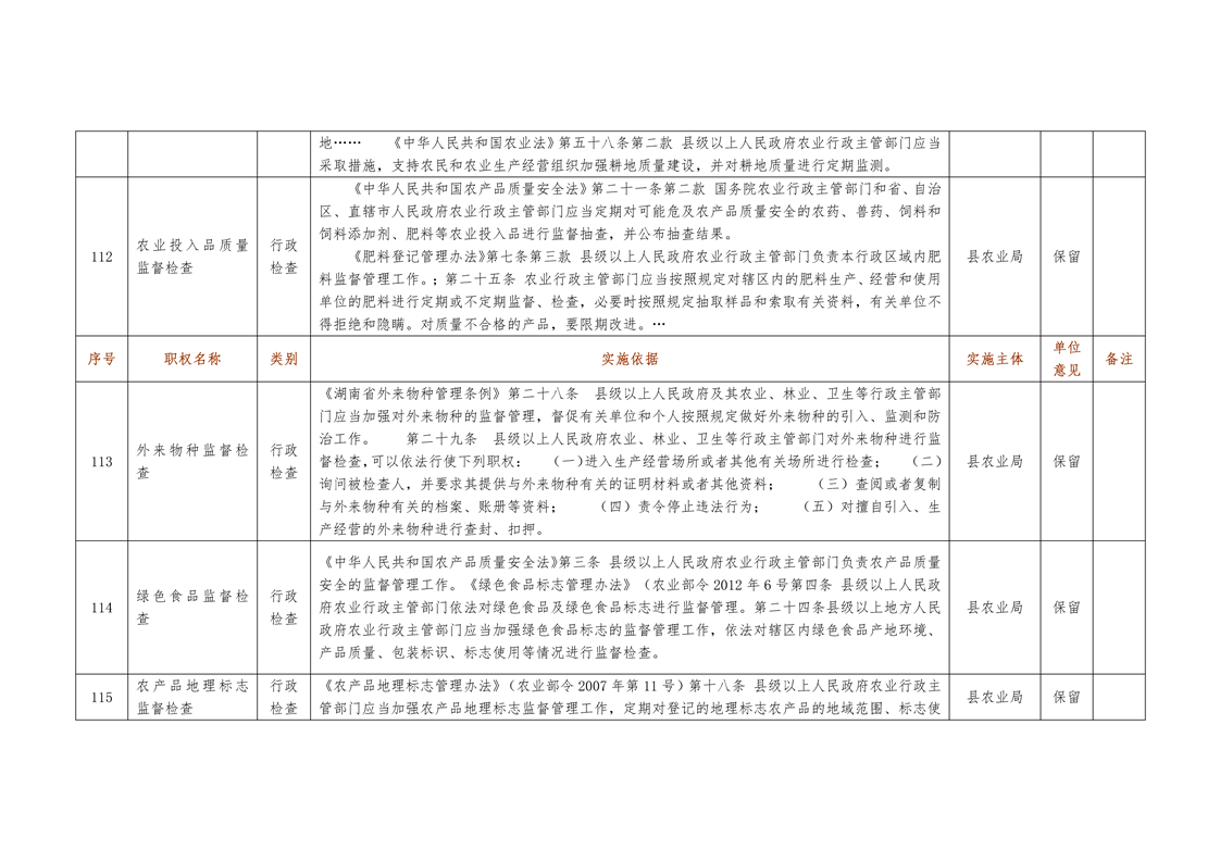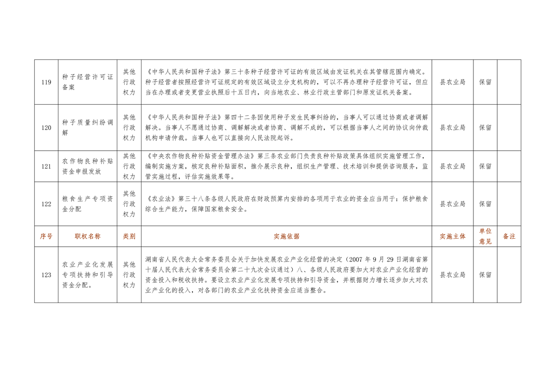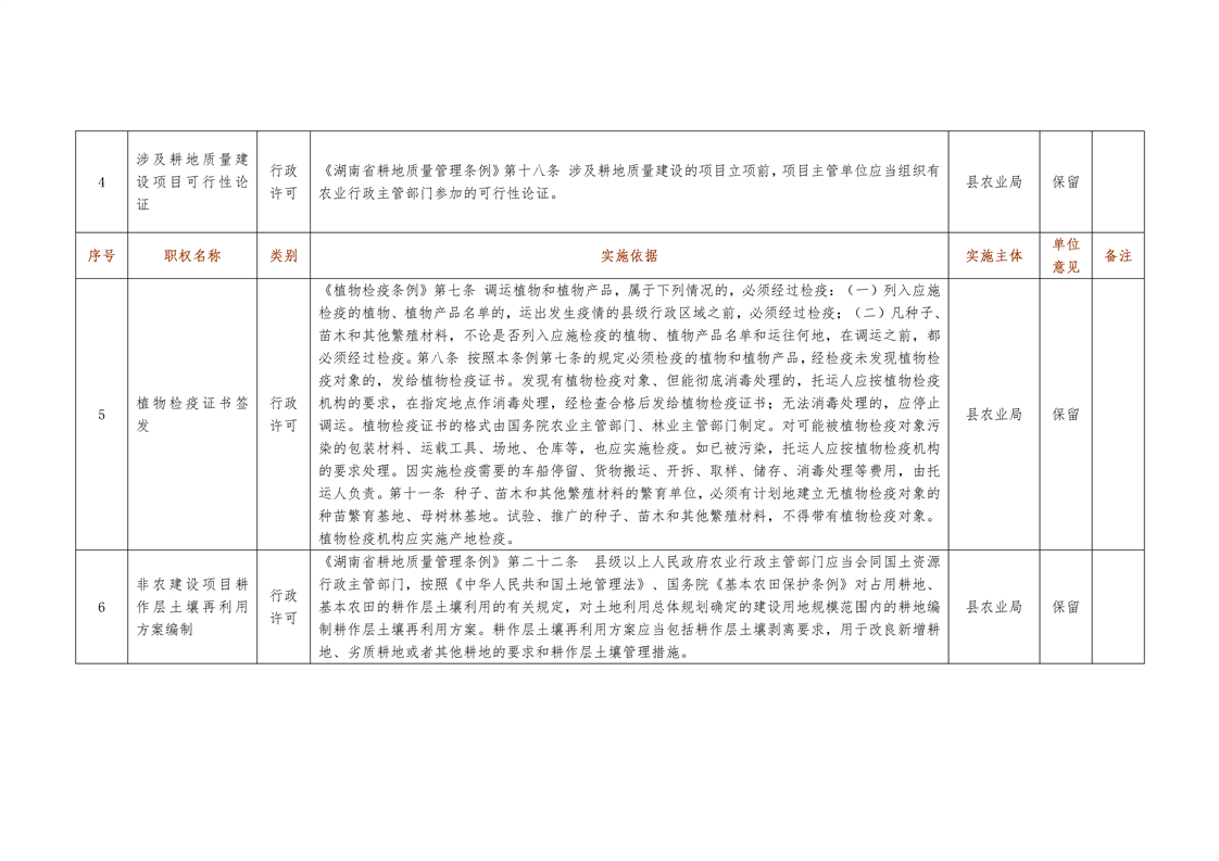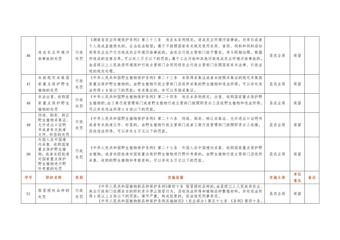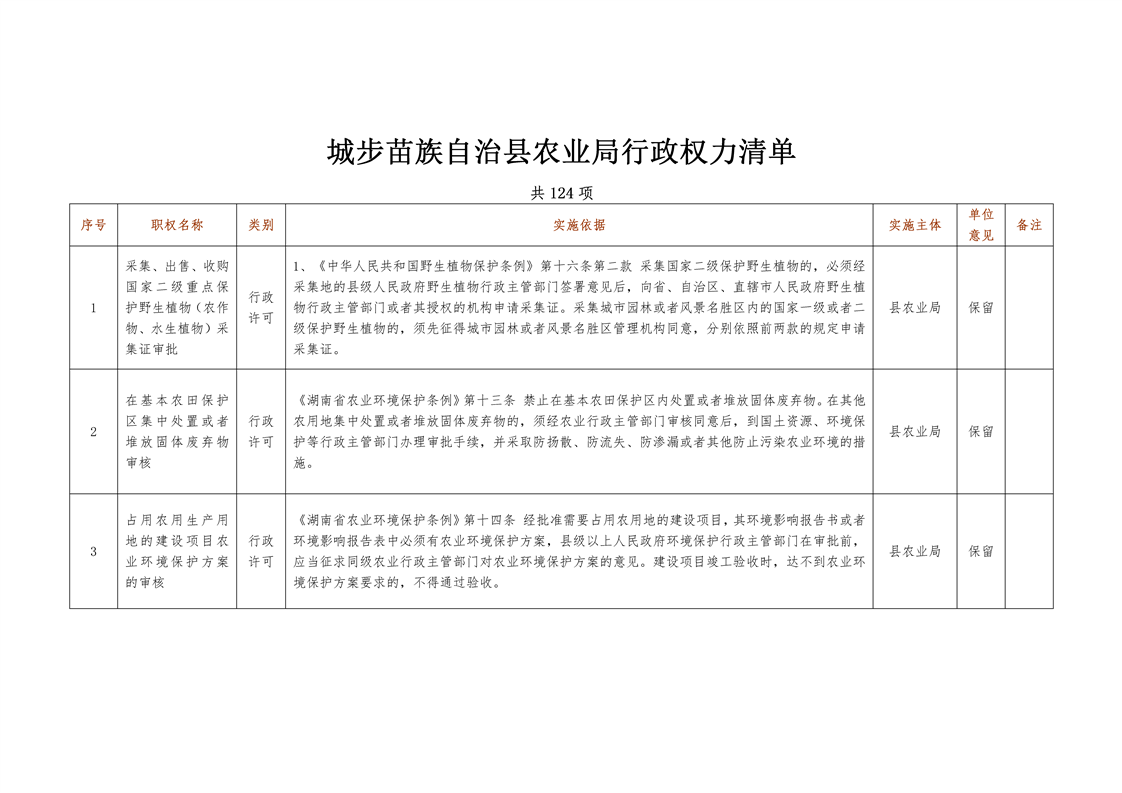 城步苗族自治县农业局行政权力清单