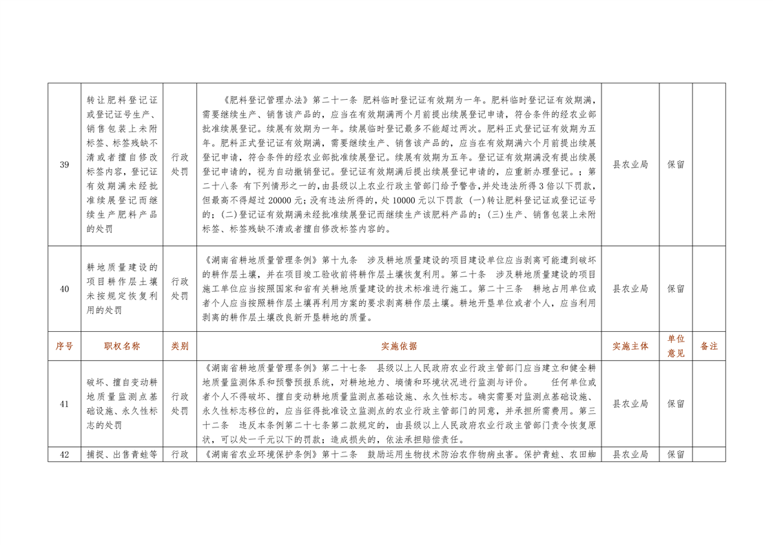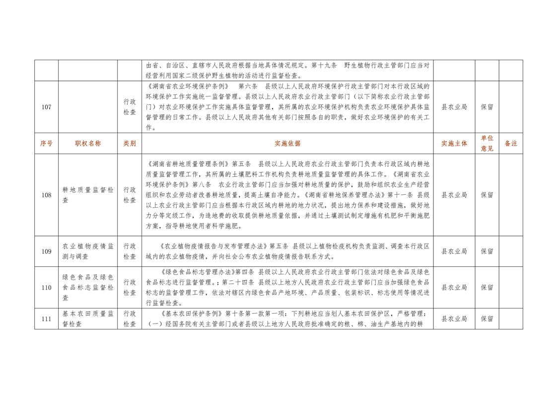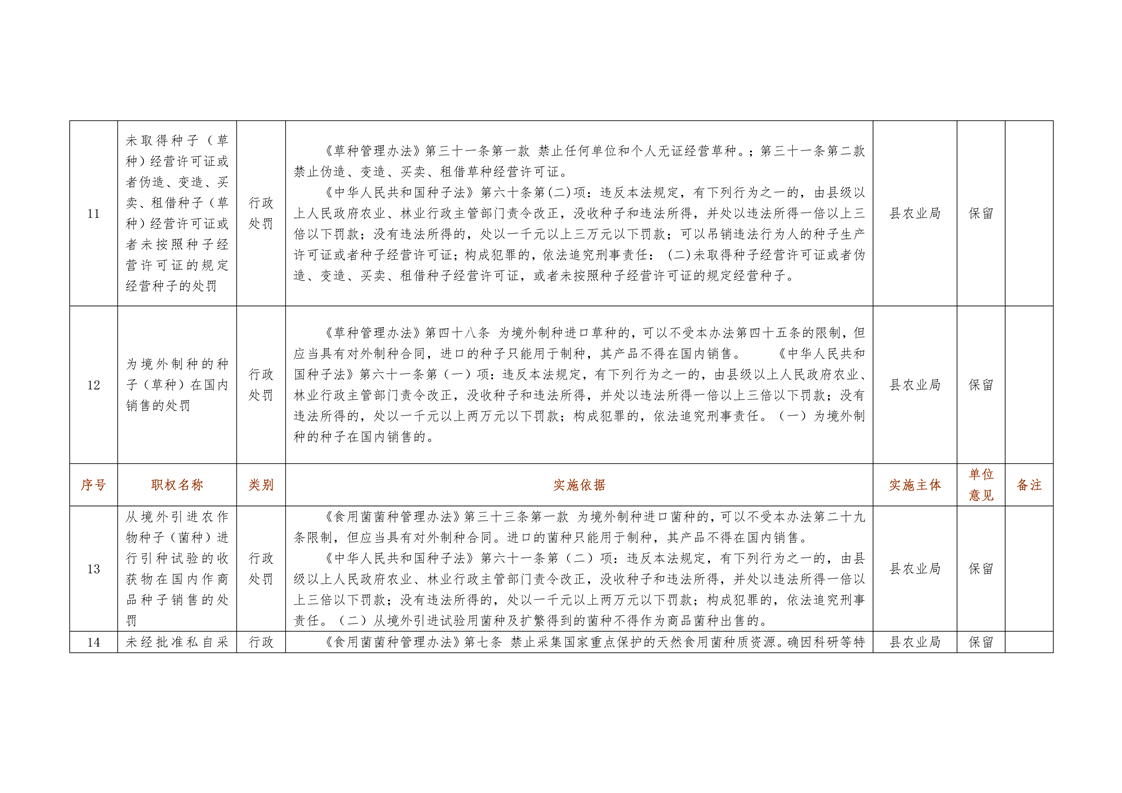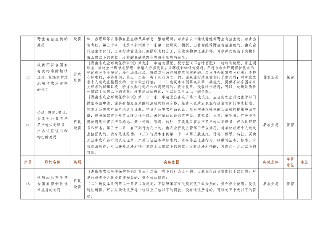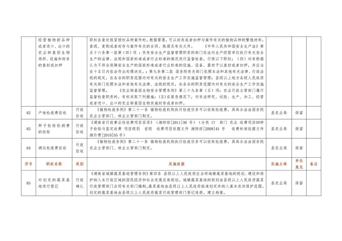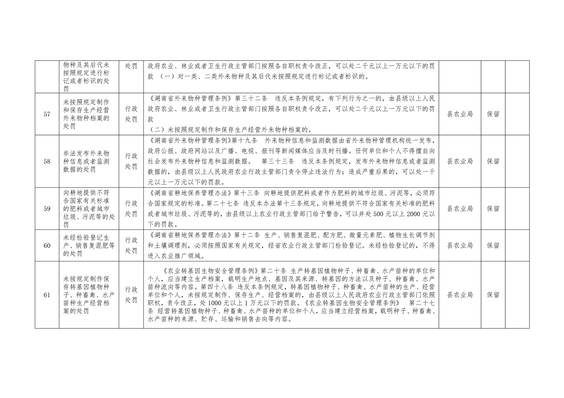 城步苗族自治县农业局行政权力清单