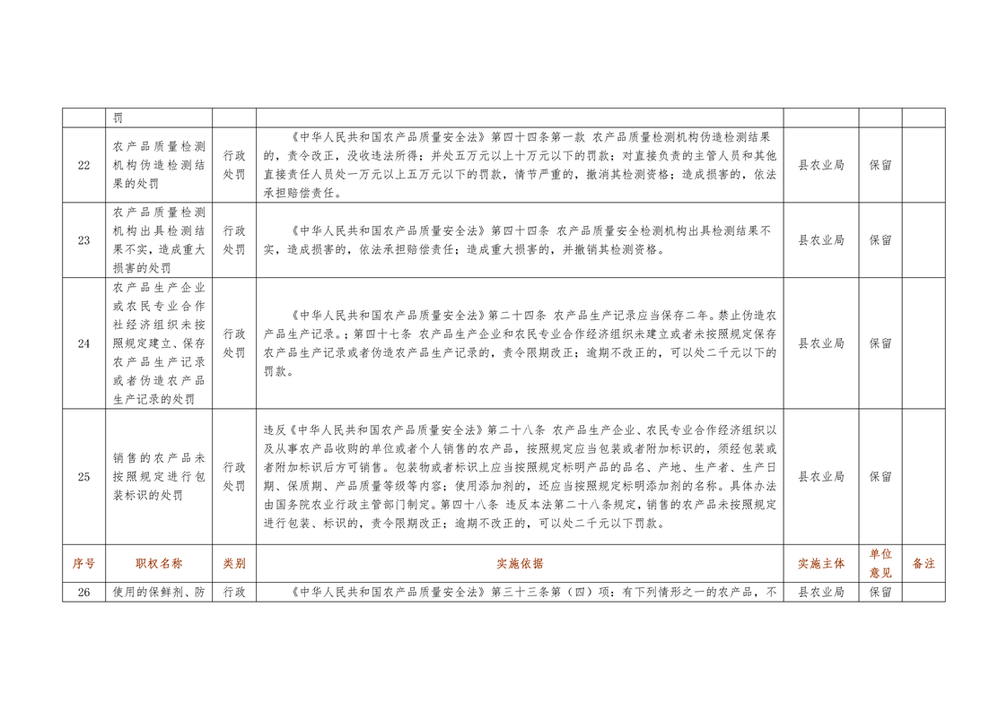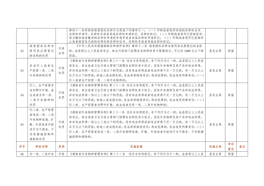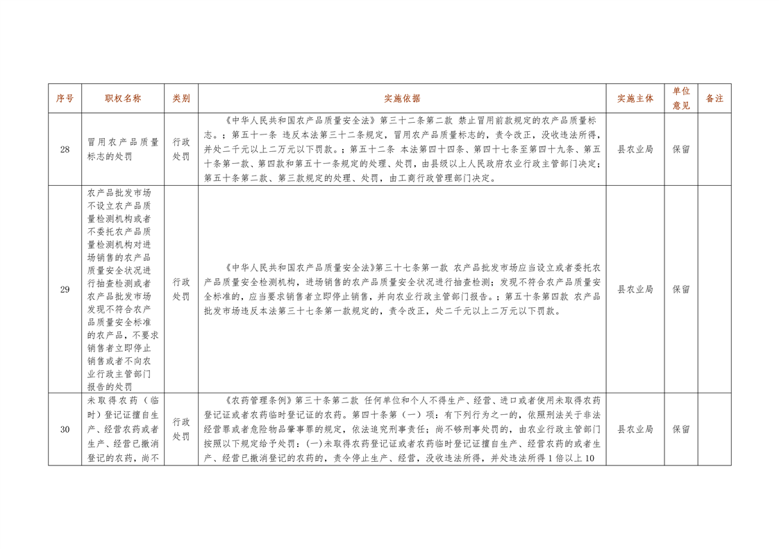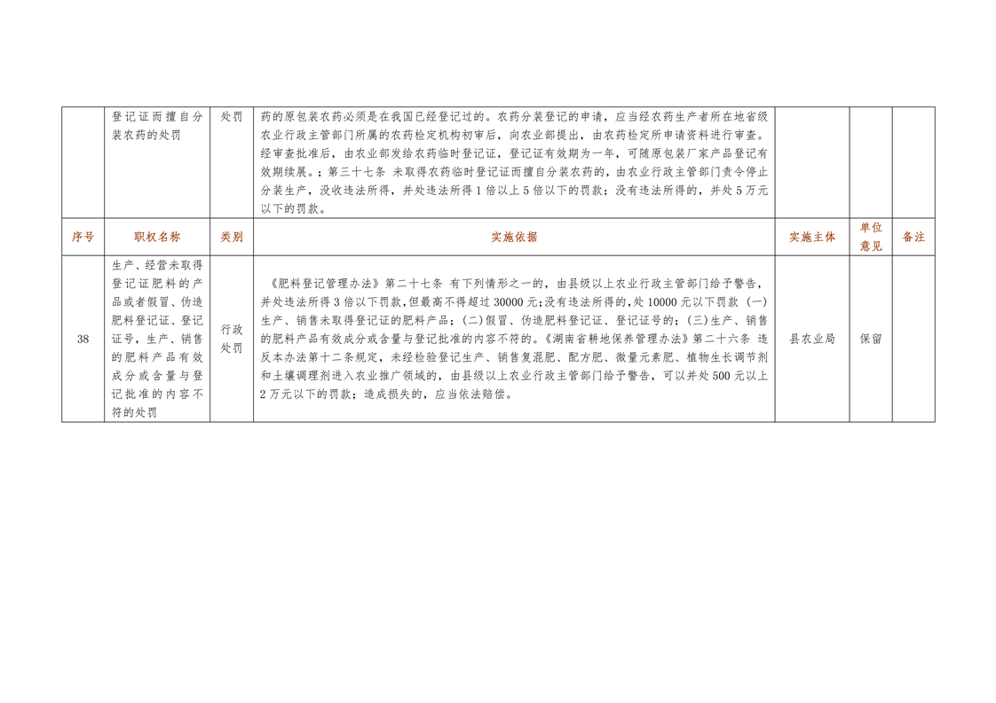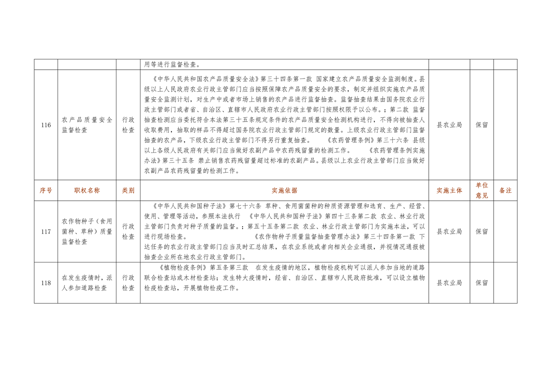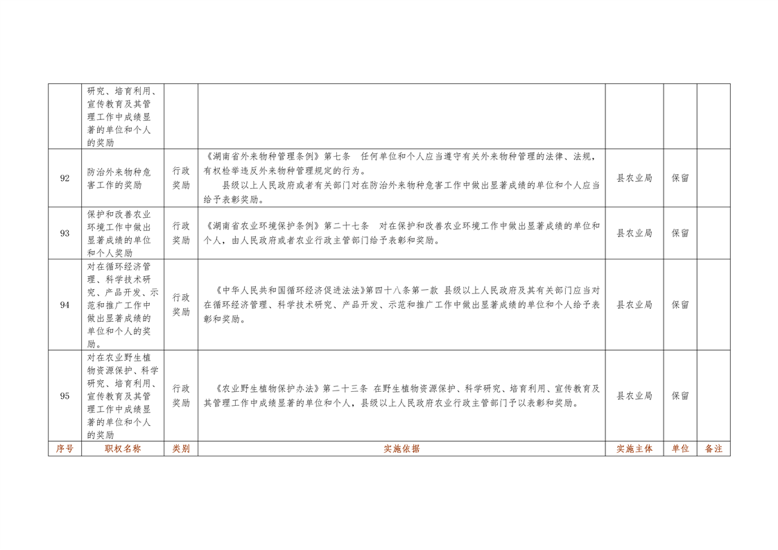 城步苗族自治县农业局行政权力清单
