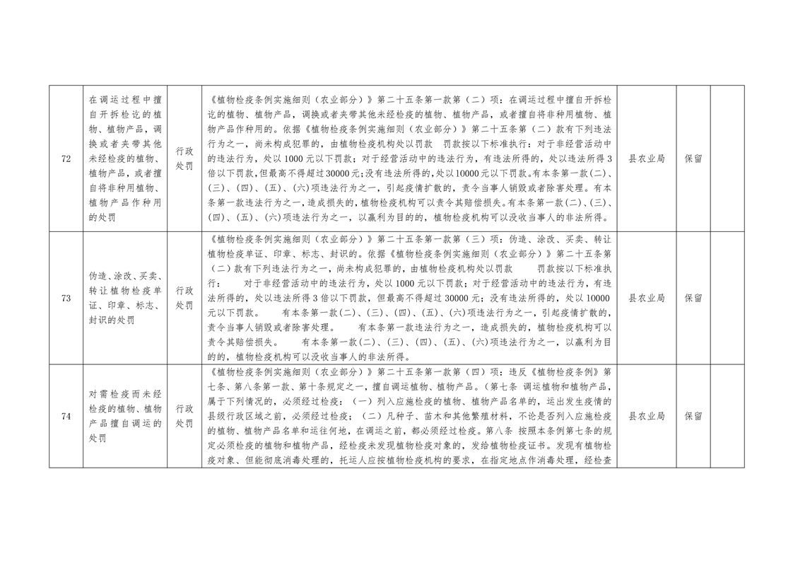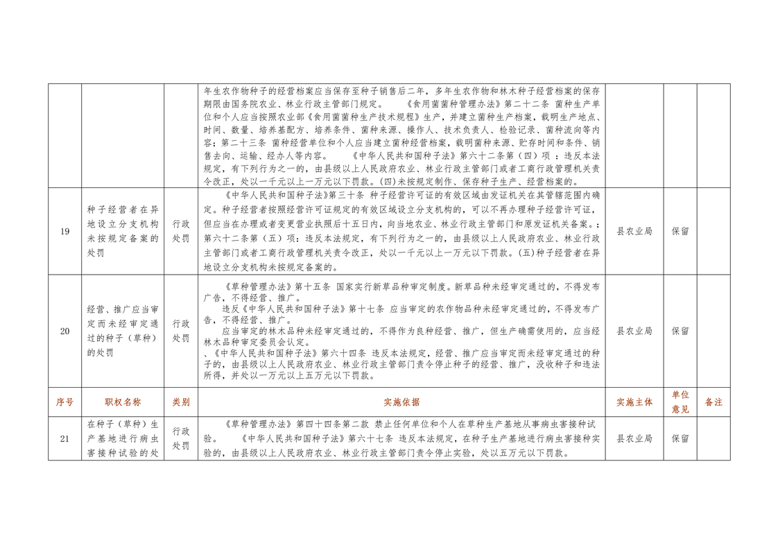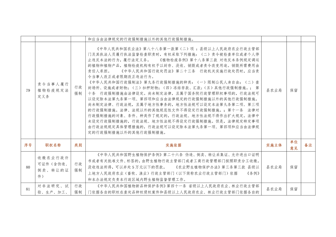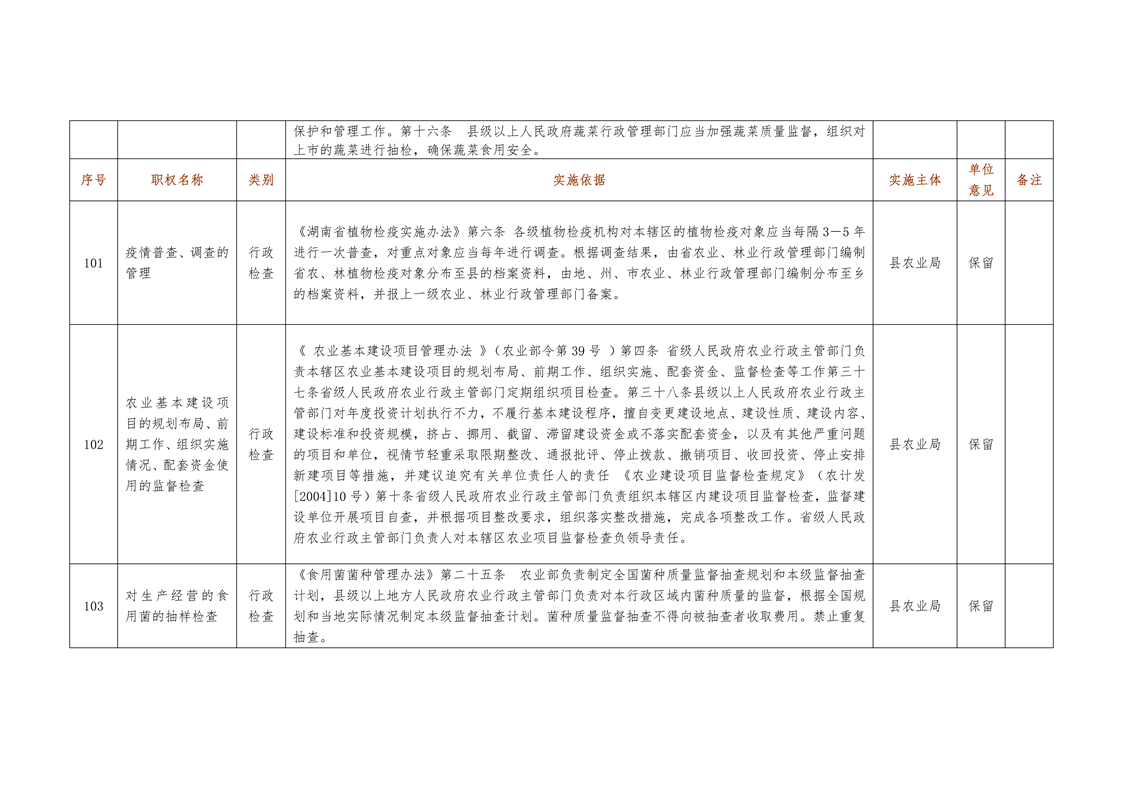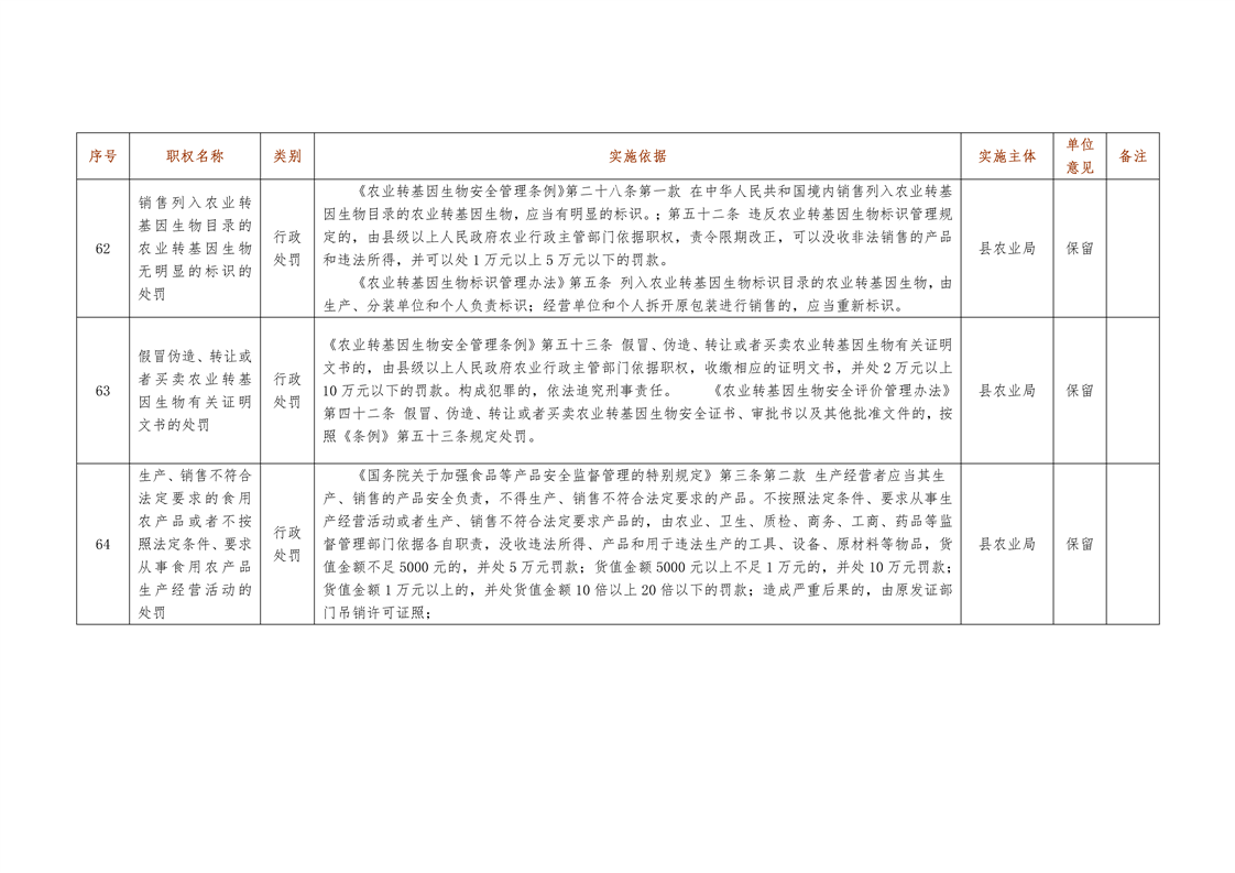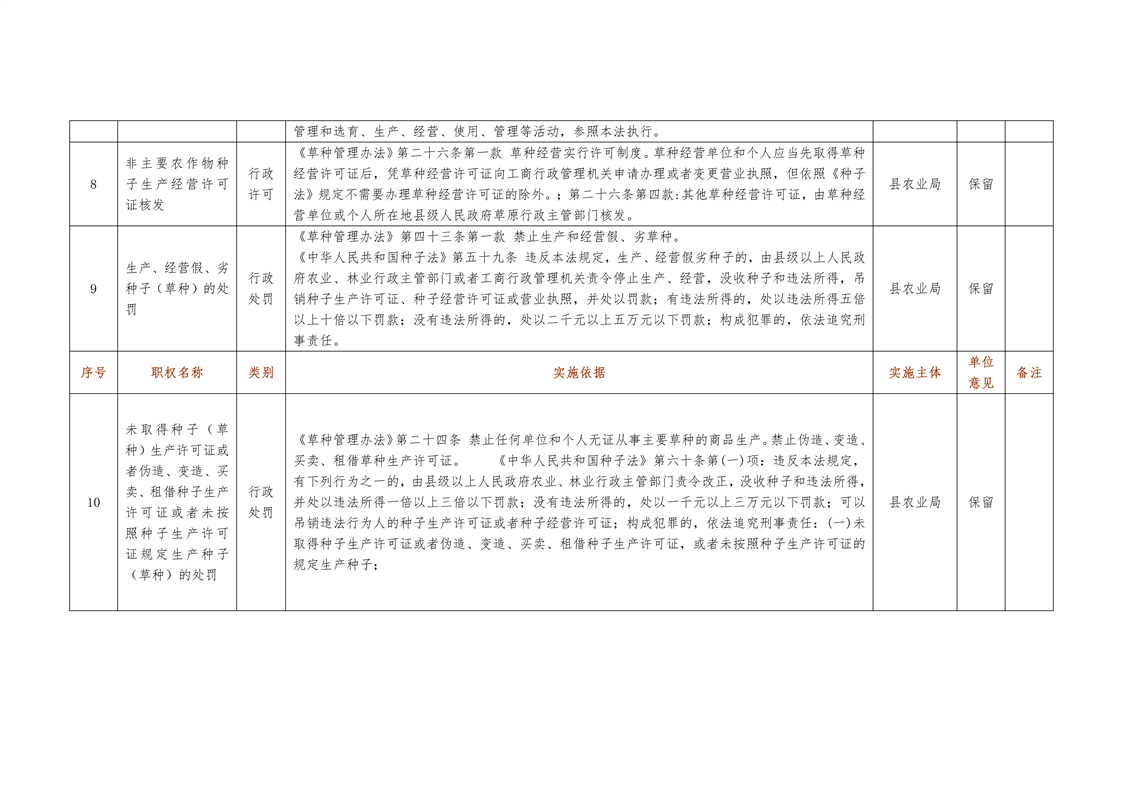城步苗族自治县农业局行政权力清单