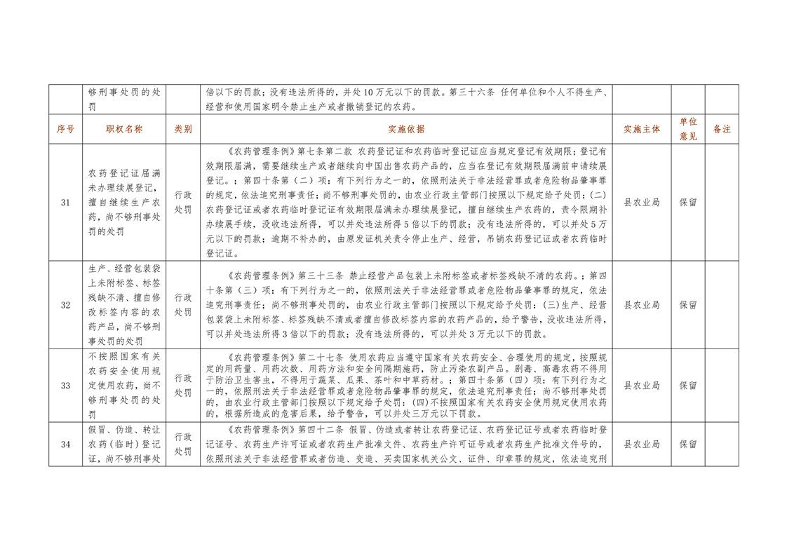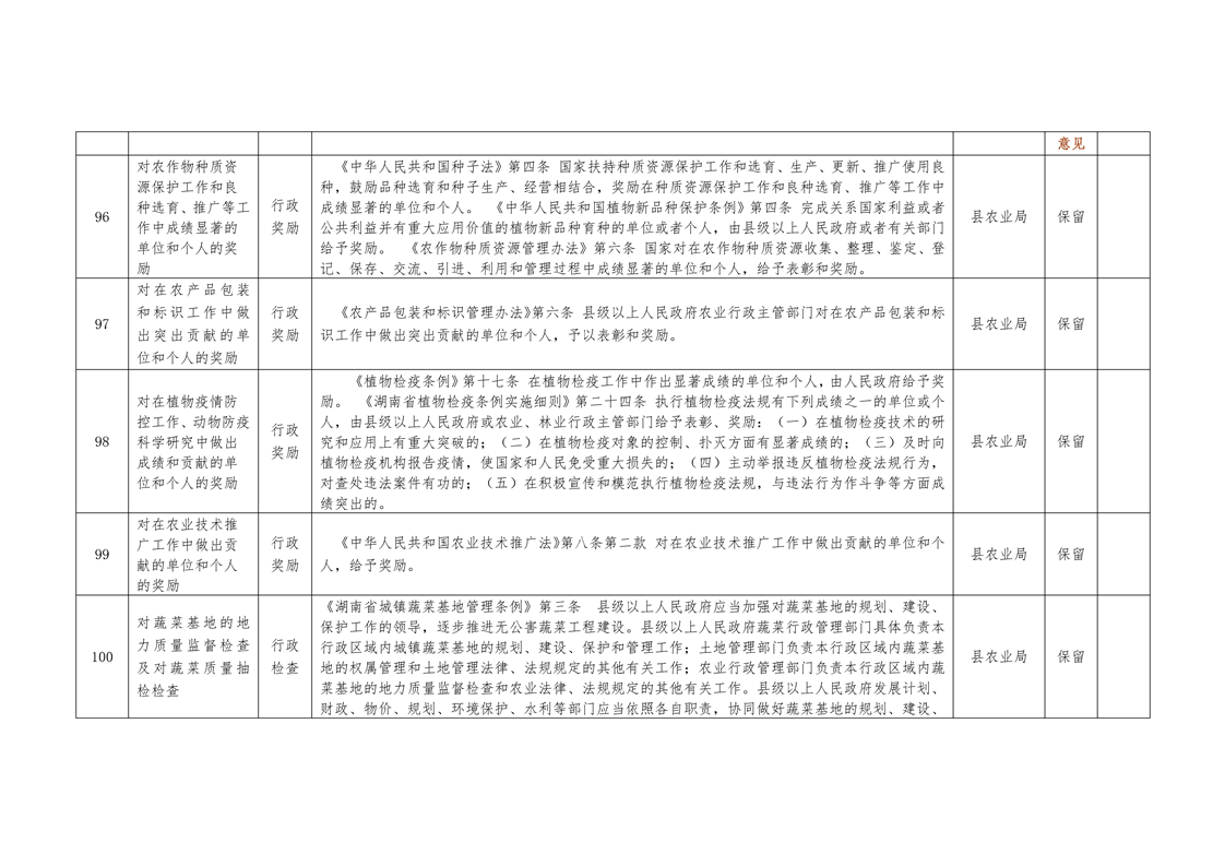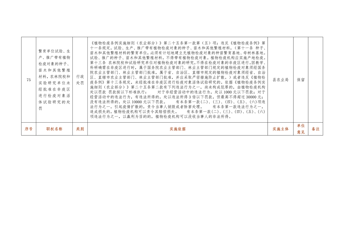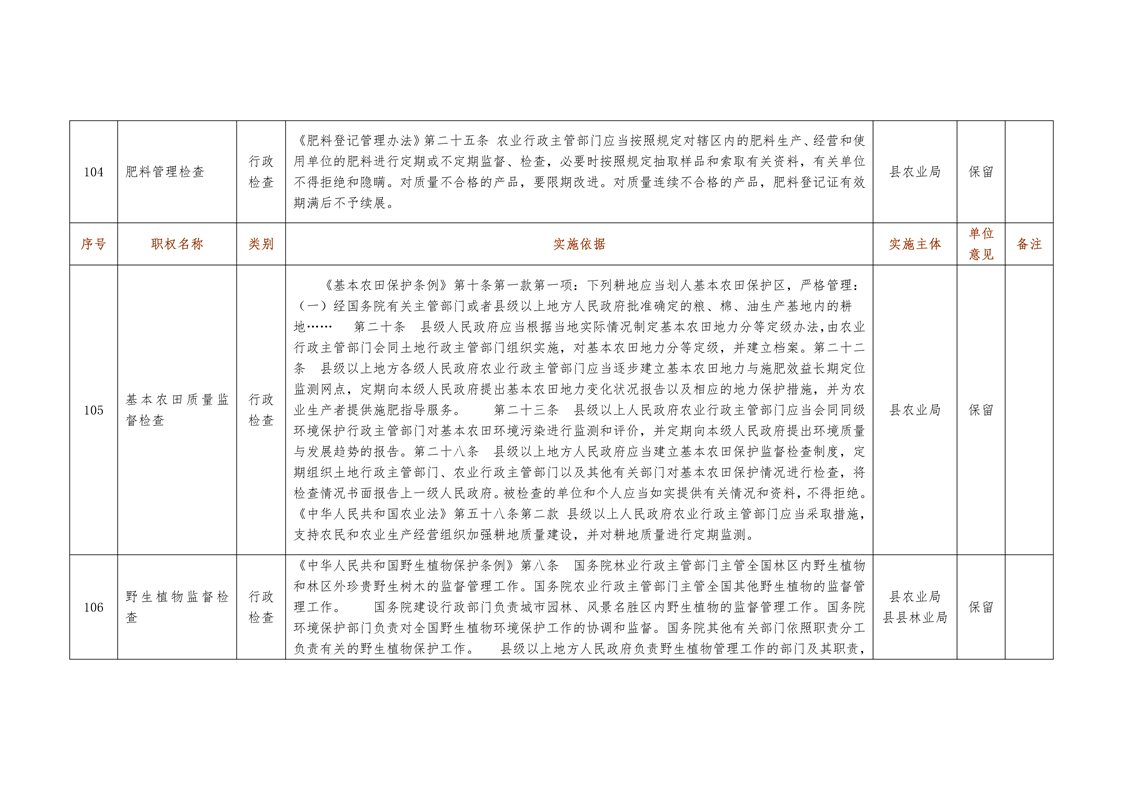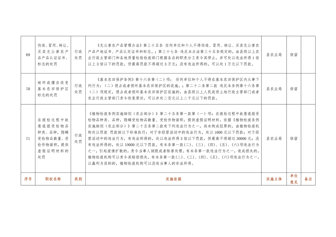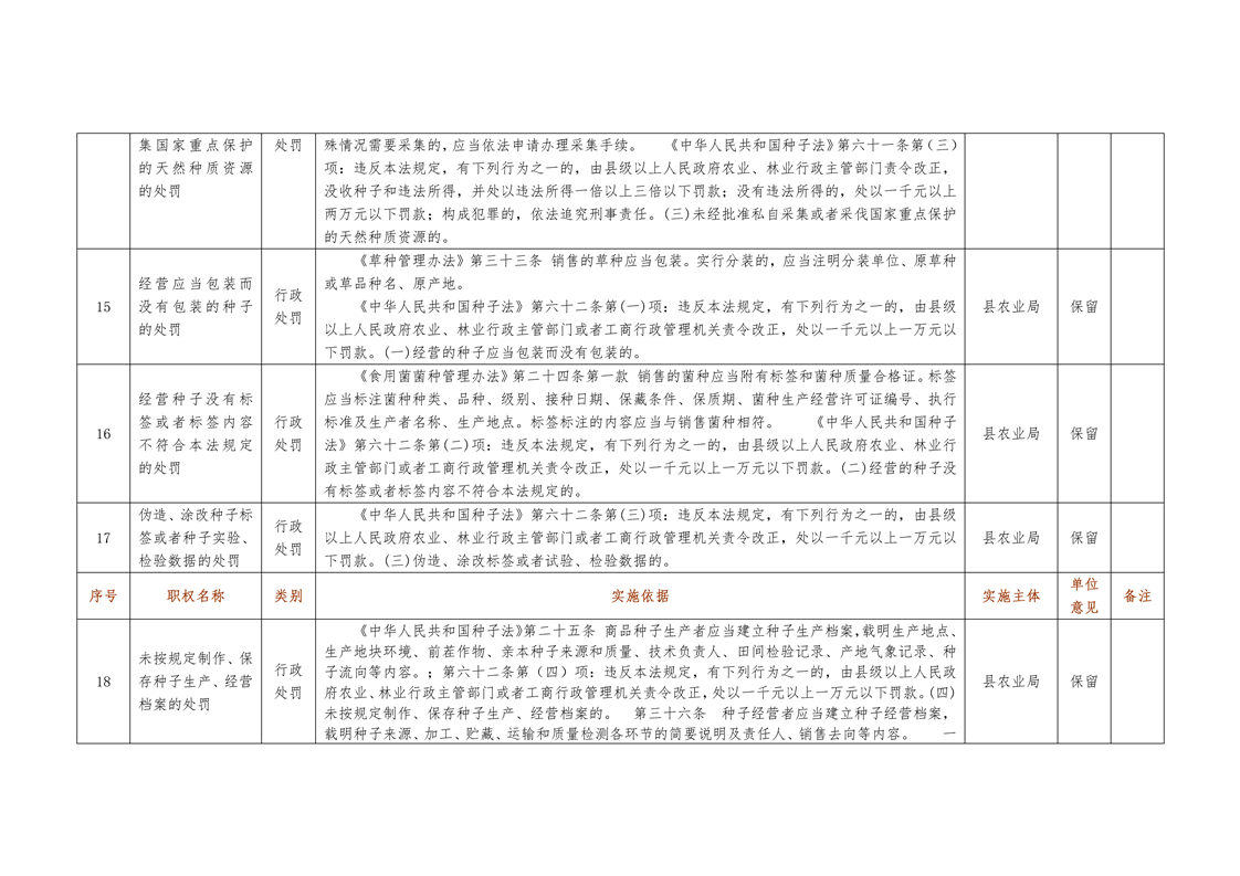 城步苗族自治县农业局行政权力清单