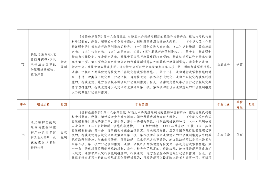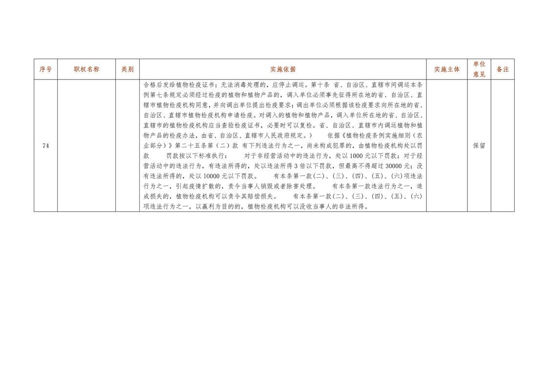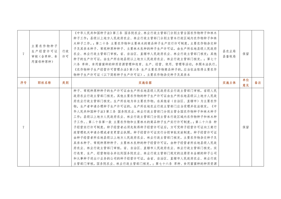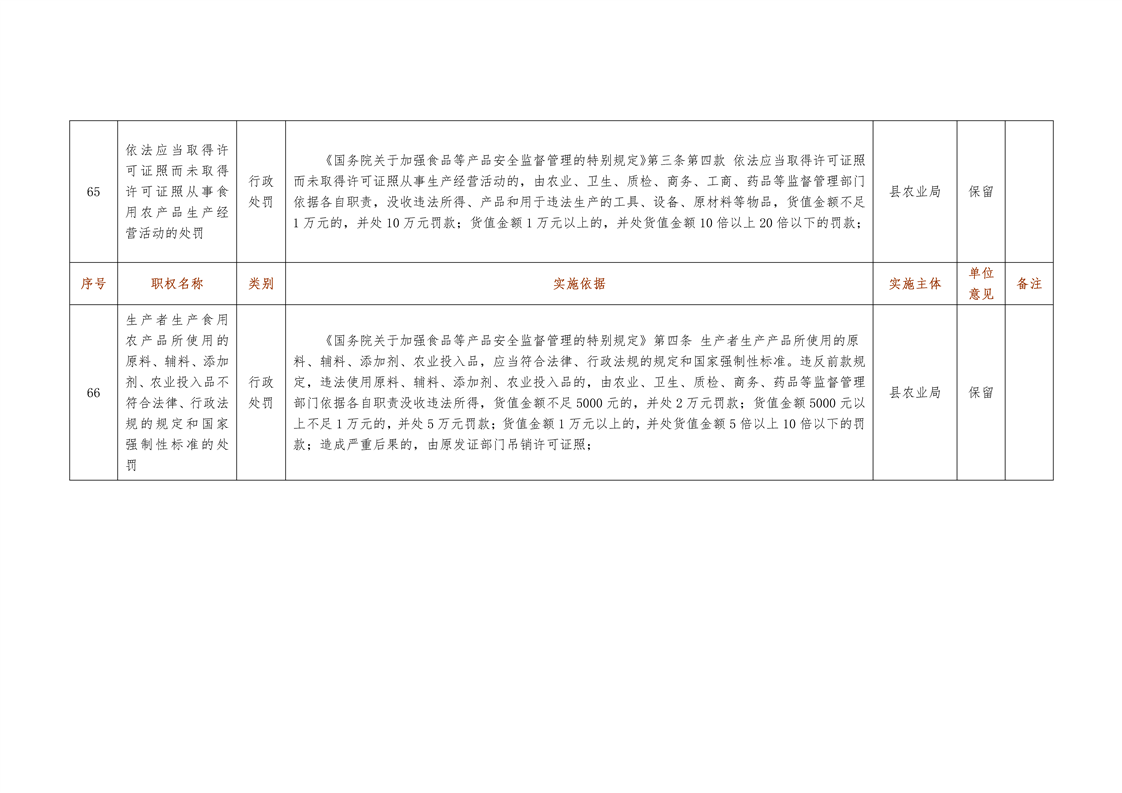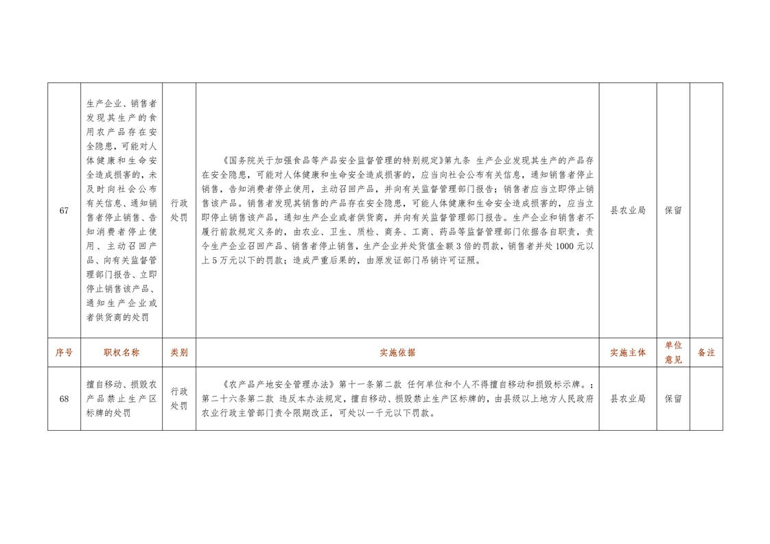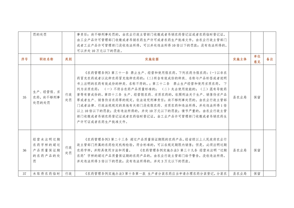 城步苗族自治县农业局行政权力清单