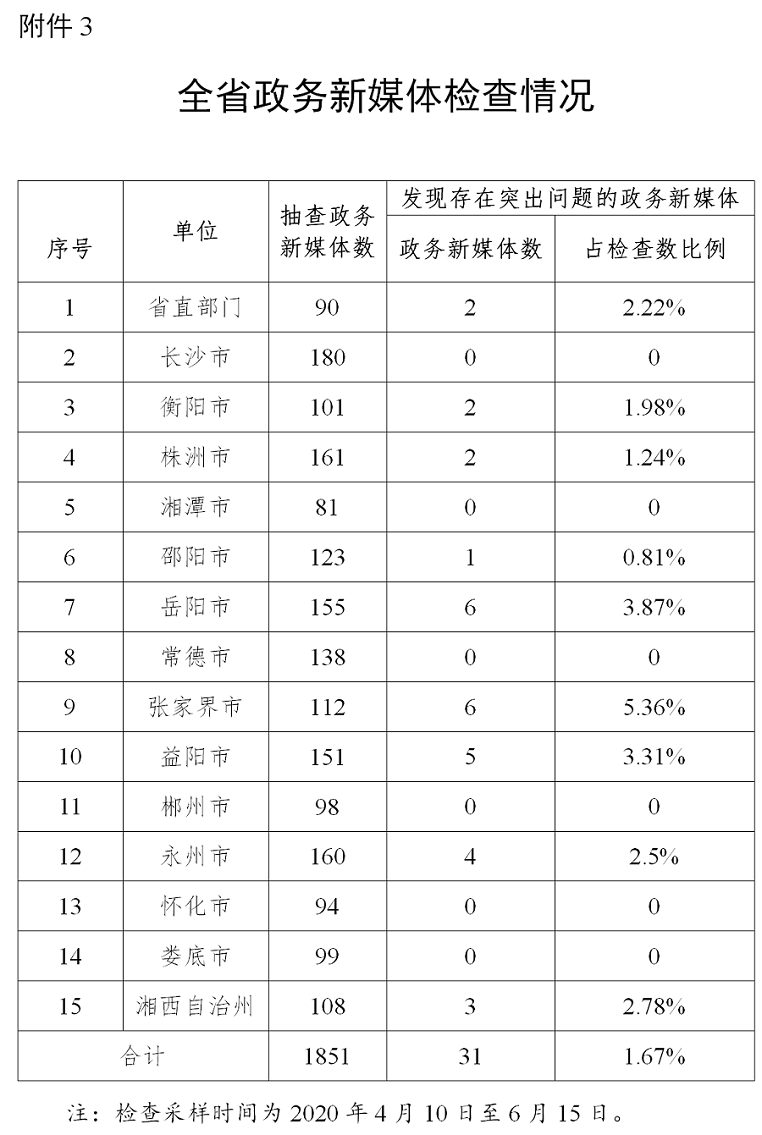湖南省政务管理服务局关于2020年第二季度全省政府网站与政务新媒体检查情况的通报