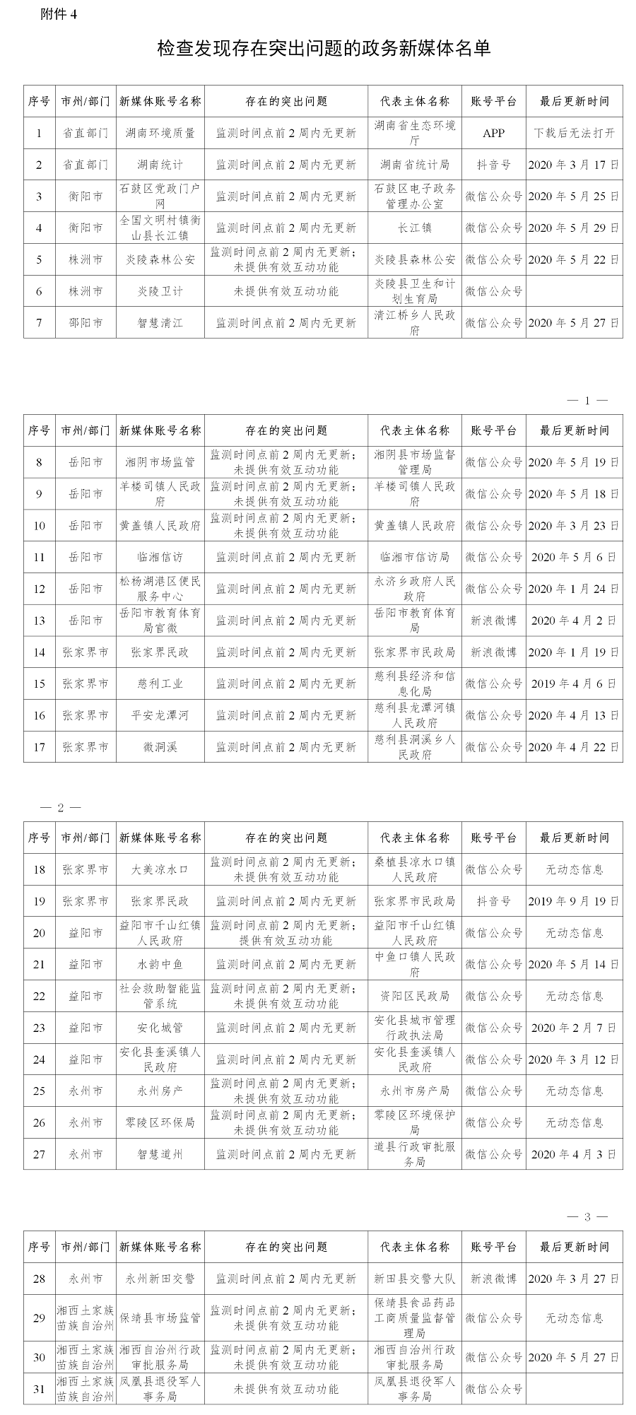 4.检查发现存在突出问题的政务新媒体名单