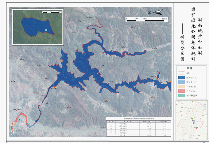 三、进行公示的拟建湖南城步白云湖国家湿地公园(试点)位于湖南省城步县,总面积1198.6公顷,功能区划图见附件。