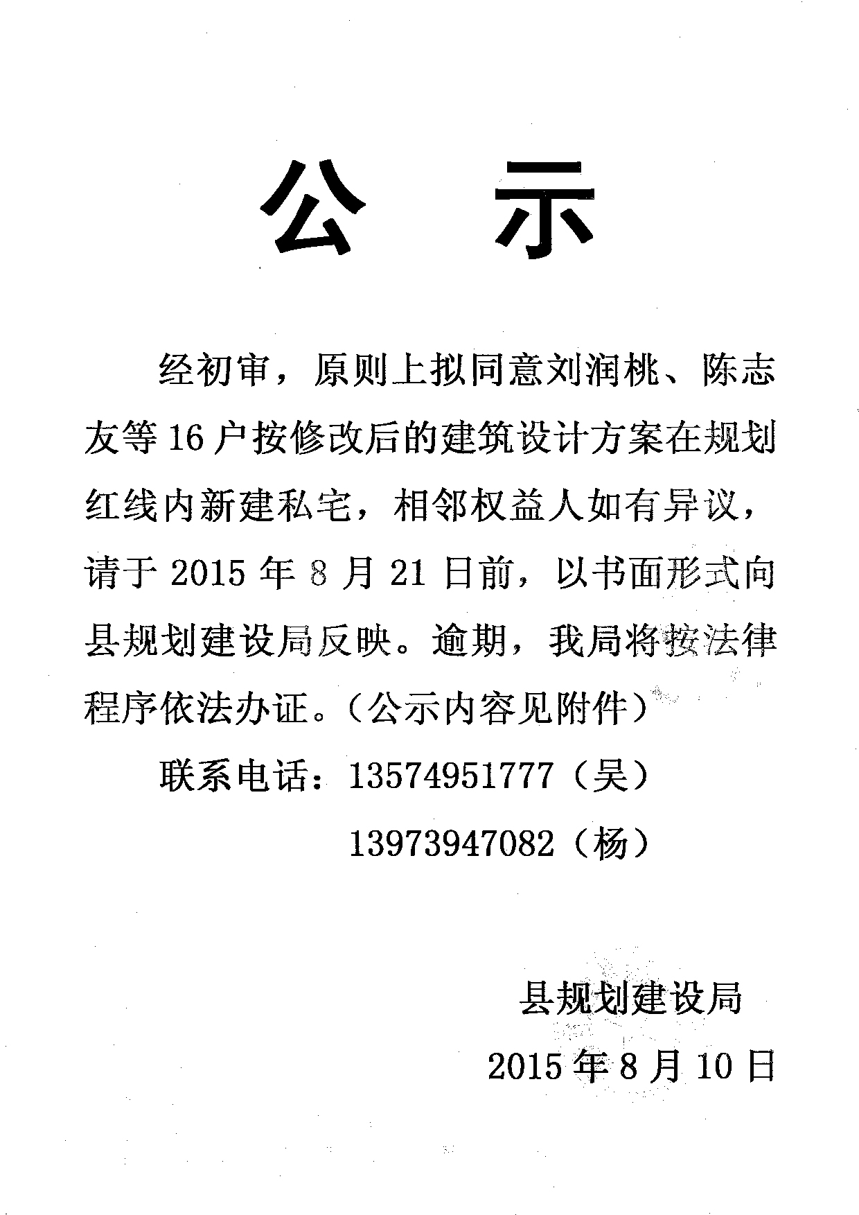 刘润桃等16户《工程规划许可》修改公示