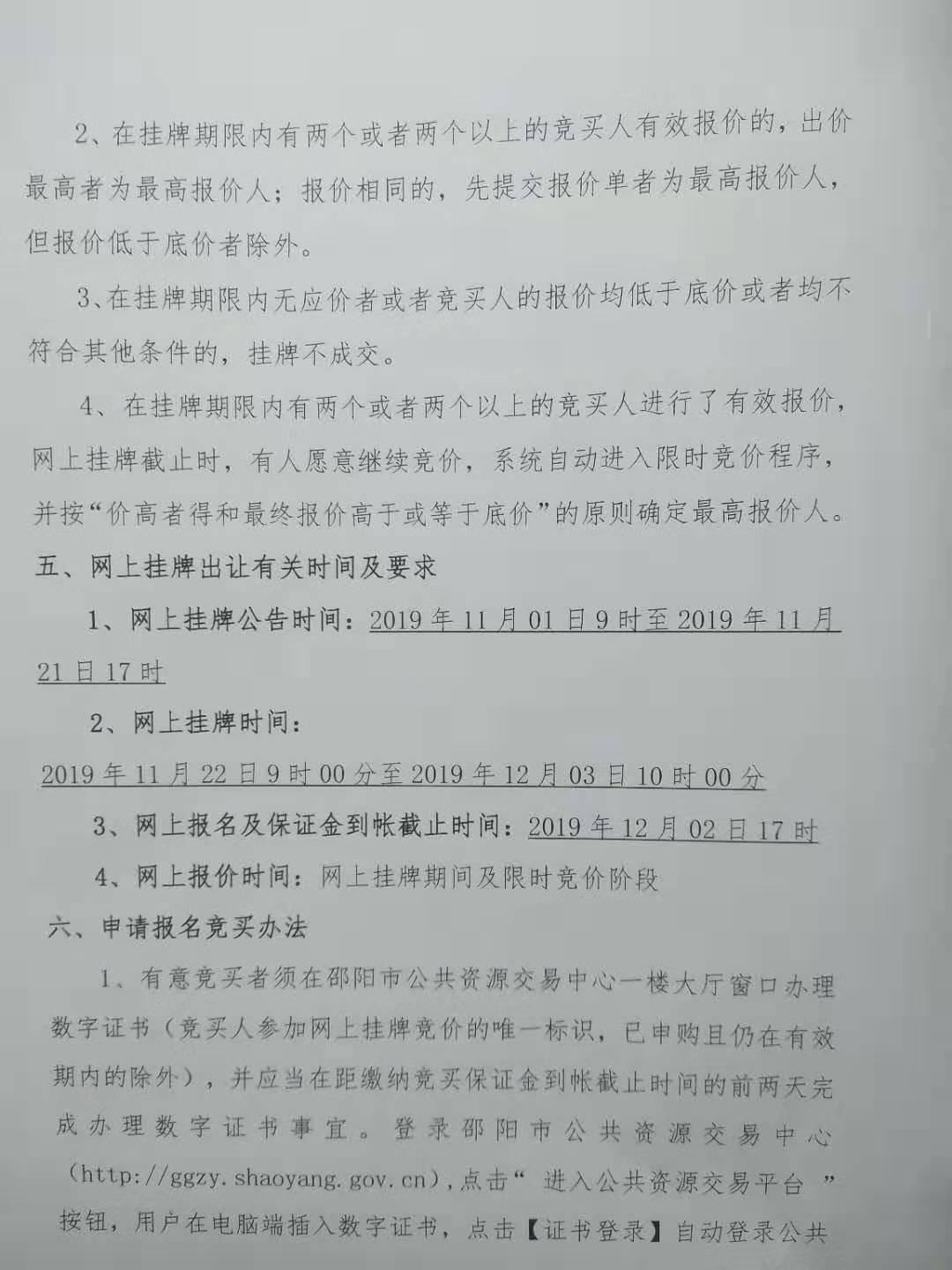 邵阳市公共资源交易中心文件 邵公资土网挂告字【2019】188号