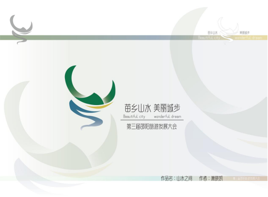 设计说明:标识由中文字“邵”抽象设计而成,融合数字“3”、古建筑、昂首飞龙、山川秀丽、溪河纵横、展翅飞鸟等元素,让邵阳市旅游焕发出更加迷人的风彩,彰显邵阳、城步苗疆风情的旅游特色,体现第三届邵阳旅游发展大会文旅融合、产业引领深厚内涵。富有张力的表现形式,赋予城步生态、健康、吉祥的内涵,体现城步山水神奇多姿、城市俊美绝伦,表达第三届邵阳旅游发展大会的山水文化主题内涵。昂首飞龙与山清水秀结合,展现城步原生态的魅力与厚重文化底蕴,体现邵阳市文化旅游广阔发展前景,寓意第三届邵阳旅游发展大会的魅力精彩与圆满成功。