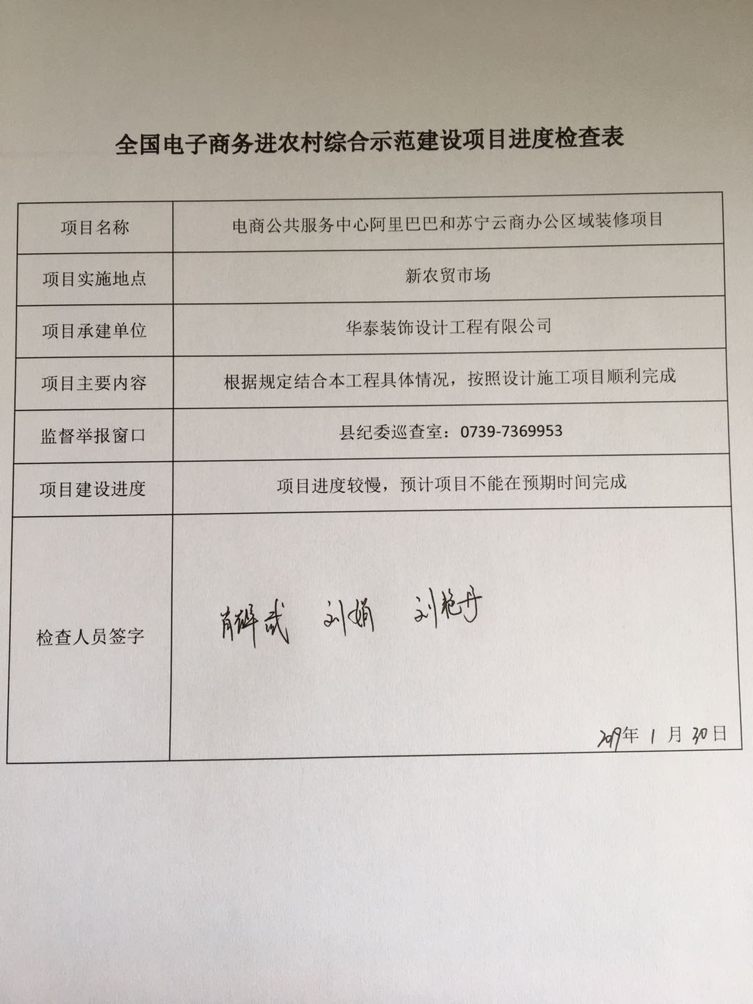 电商公共服务中心阿里巴巴和苏宁云商办公区域装修项目进度检查表
