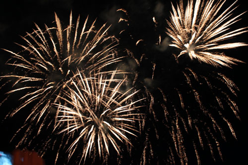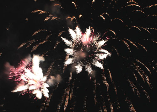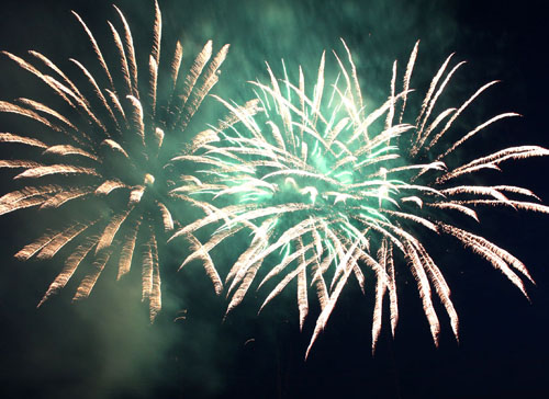 八时八分,随着点火令下达,十几秒钟后,一束束耀眼的焰火腾地而起,夹着呼啸声,接连不断地冲入云霄。