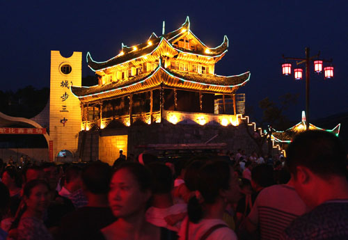 焰火燃放尚未开始,城南堵头、利济门城楼、风雨桥和沿江大道上已是人山人海,挤得水泄不通,数万双眼睛焦急等待着这一激动时刻的到来。