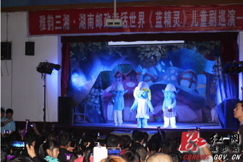 红网城步站5月25日讯(通讯员杨永泽)5月23日上午,城步邮政分公司在县教师进修学校举行了大型的“蓝精灵”儿童文化宣演活动。