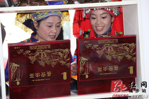特色商品琳琅满目。本次我县组织参展的展品包括了南山牧业公司的惟樽纯牛奶、酸奶、燊威农业的罐装清水笋、磊金公司的竹木雕、天元木业的活性炭雕、长安虫茶专业合作社的长安虫茶等上30多个品种;众多的特色商品引得市民不时的询问,苗家姑娘现场打油茶更是吸引了市民争相品尝和购买,原生态民俗文化和纯天然的食品得到市民纷纷的称赞。