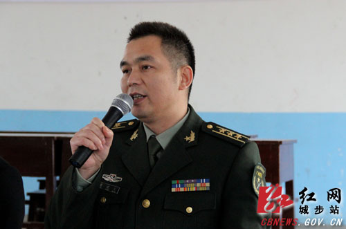 市军分区后勤部部长曹建文在发放仪式上讲话。肖丁勤摄