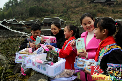 “哇,爱心套餐包太实用了,有围巾、帽子、雨伞、手电,还有健康应急包,真是超级高兴!”在发放仪式上,每一位领到爱心套餐包的孩子们迫不及待地翻看起来。中国儿童青少年基金会秘书长朱锡生介绍,此次“HELLO小孩”活动面向湖南省城步苗族自治县、隆回县、邵阳县三个国家级贫困县的2500个留守儿童发放爱心套餐,为孩子们提供了18种学习生活必需品,并准备了回音卡,为捐赠者和受助儿童架起了情感联络的桥梁。活动当天,朱锡生一行还看望慰问了长安营镇蒙敏锐、阳佳欣、杨居辉三名贫困学生。