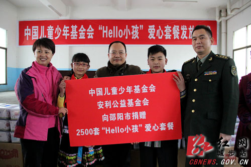 中国儿童青少年基金会携手安利公益基金会向邵阳市捐赠2500套爱心套餐。肖丁勤摄