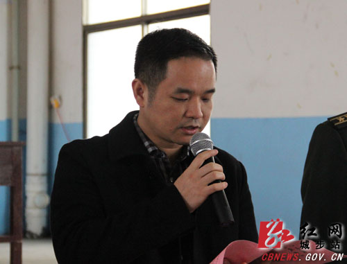 县委副书记蔡灿辉在发放仪式上致欢迎词。肖丁勤摄