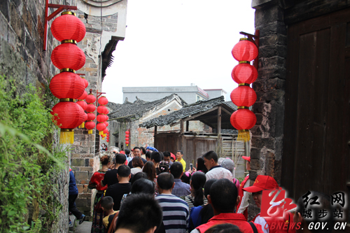 前来观赏铺头村古民居的游人如织 (肖丁勤摄)